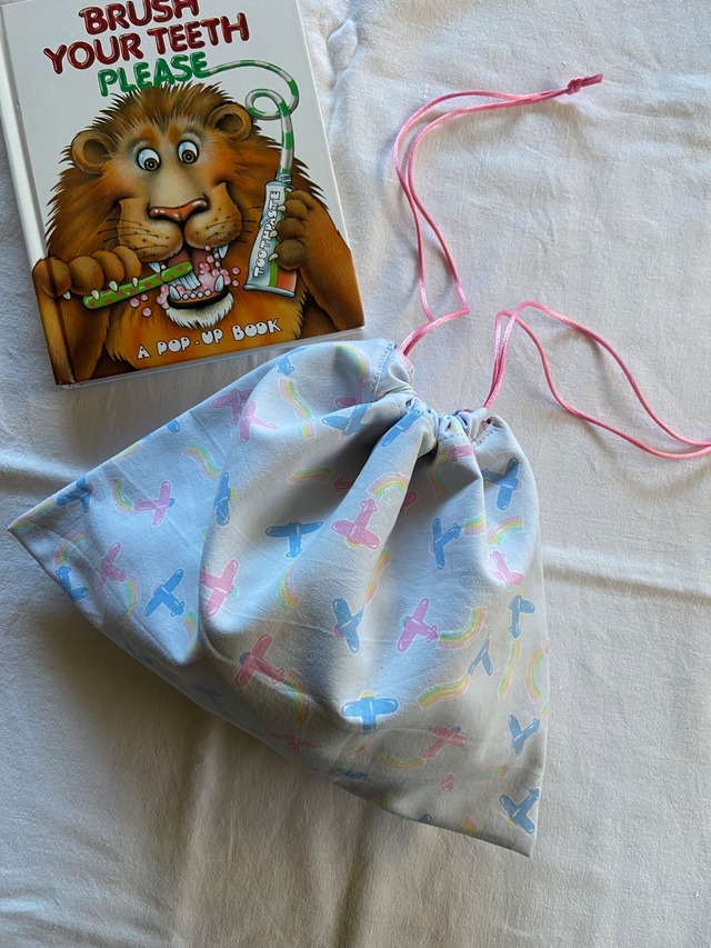 飛行機巾着(中サイズ) フランスヴィンテージ生地