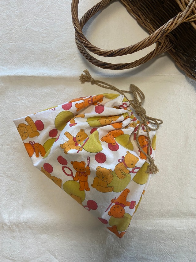 くまさん巾着(中サイズ) ヴィンテージシーツ