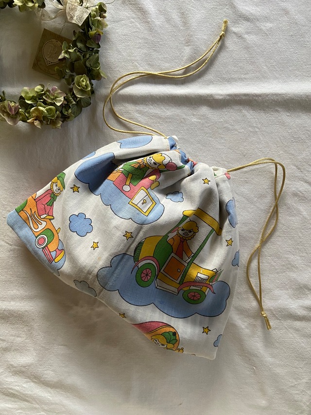 おとぎ話柄 巾着(中サイズ) ビンテージシーツ