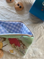 バッグの中の小さなものの整理として、メイクポーチやサニタリーとして、おせんべいや飴などのお菓子を入れて。思い思いにお使いください♡