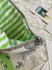 中を開けた時、グリーンのストライプ生地がチラッと見えるのもポイントです^^