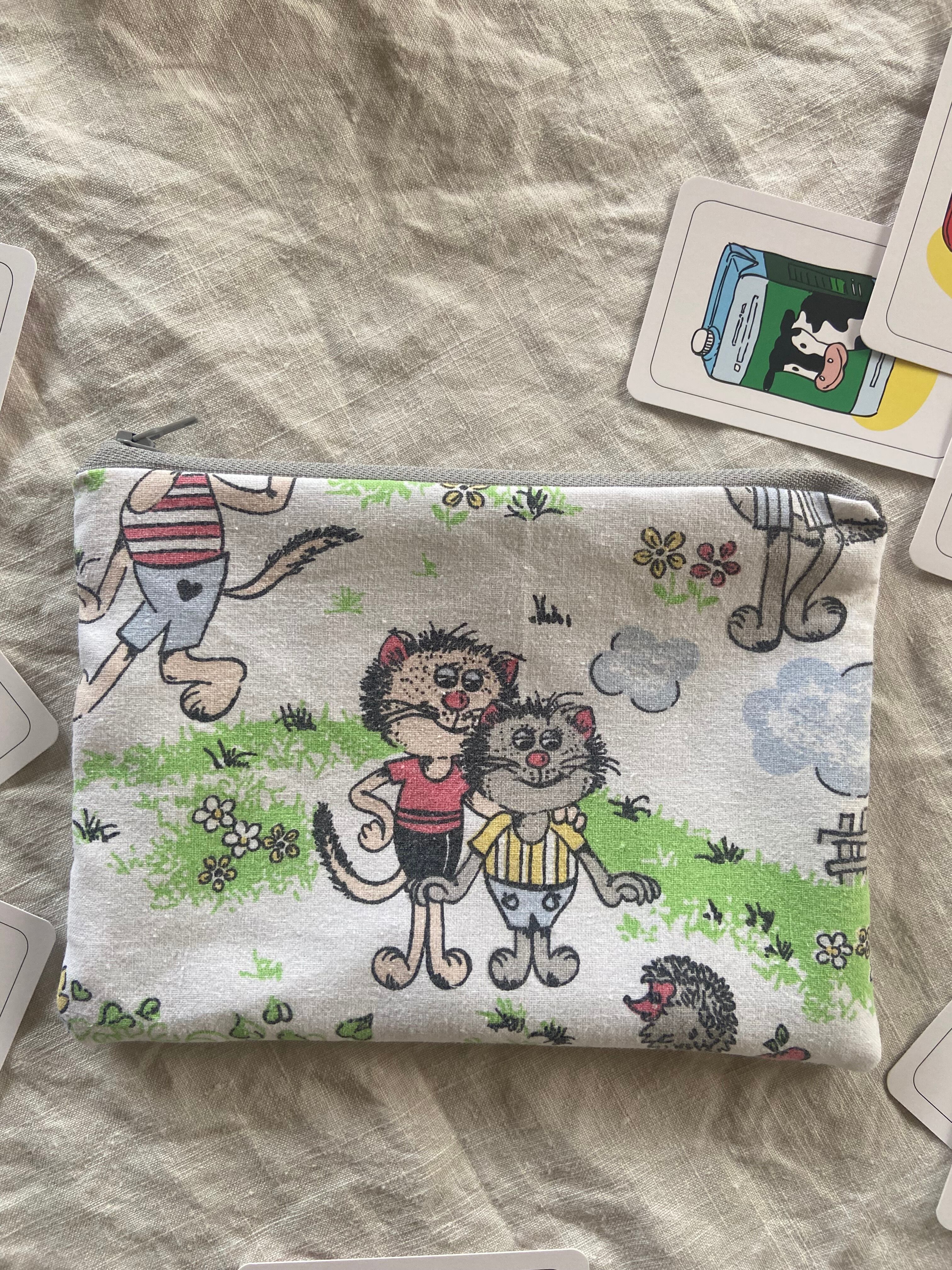 ドイツのヴィンテージファブリックで制作したポーチになります。