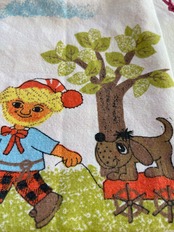 ドイツのヴィンテージファブリックで製作した巾着になります。男の子や動物が可愛く描かれております。