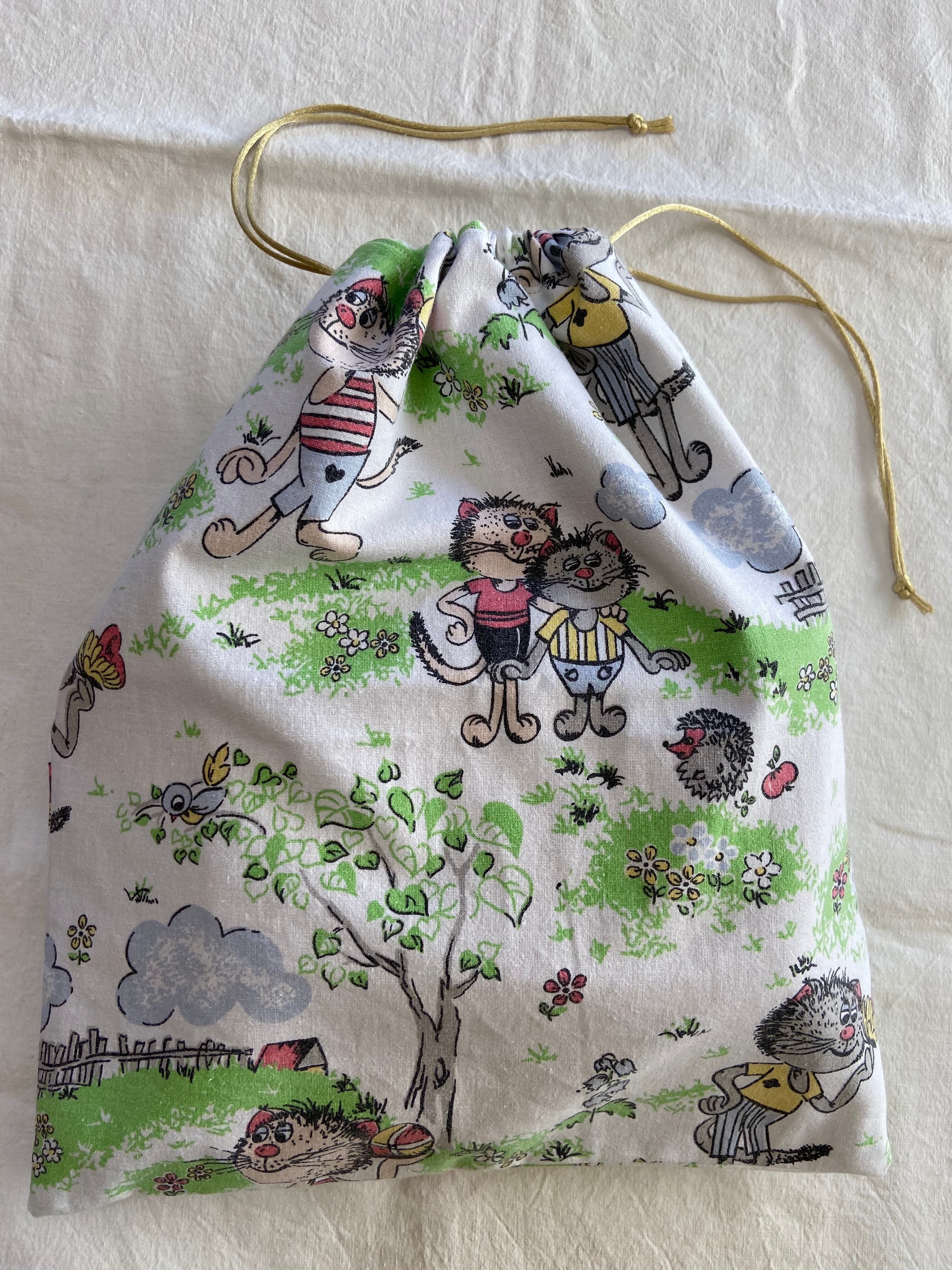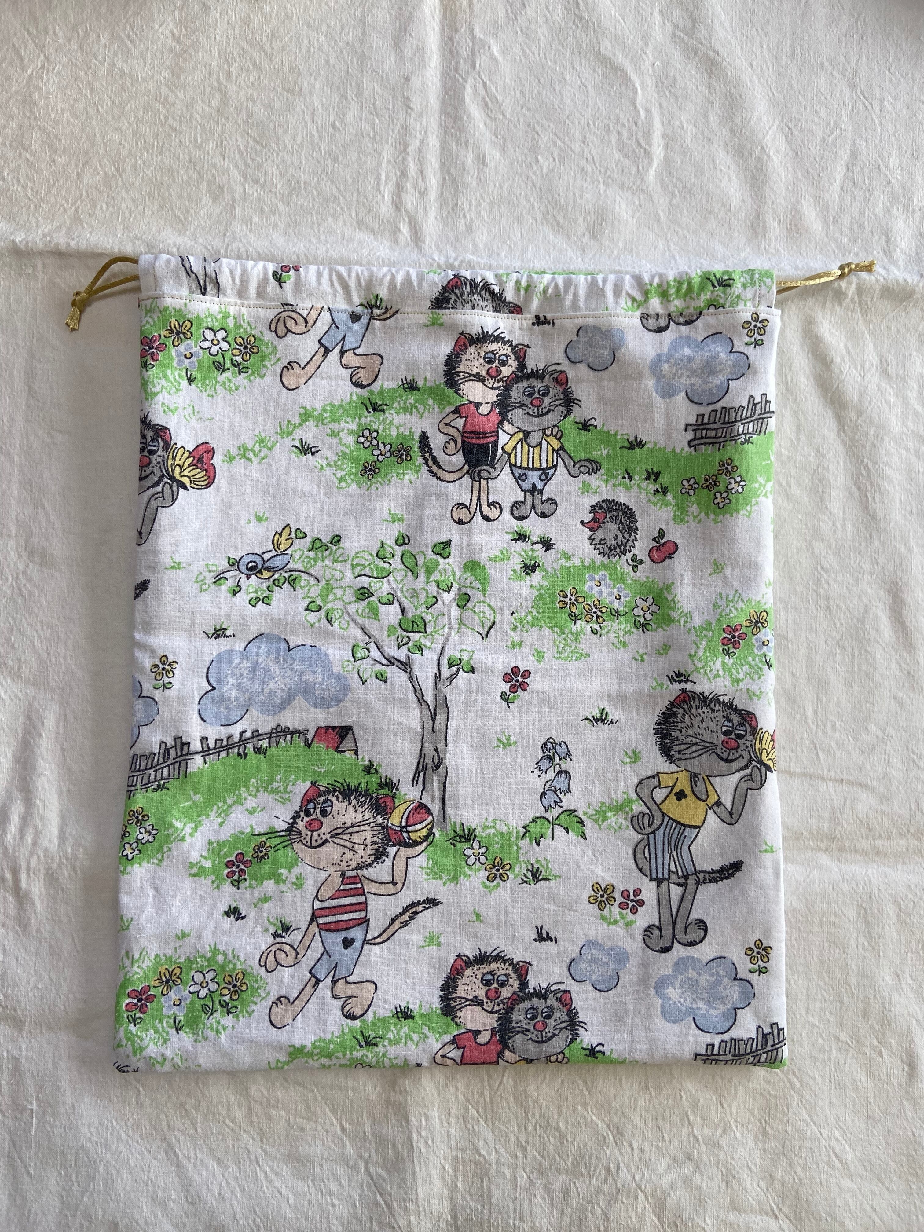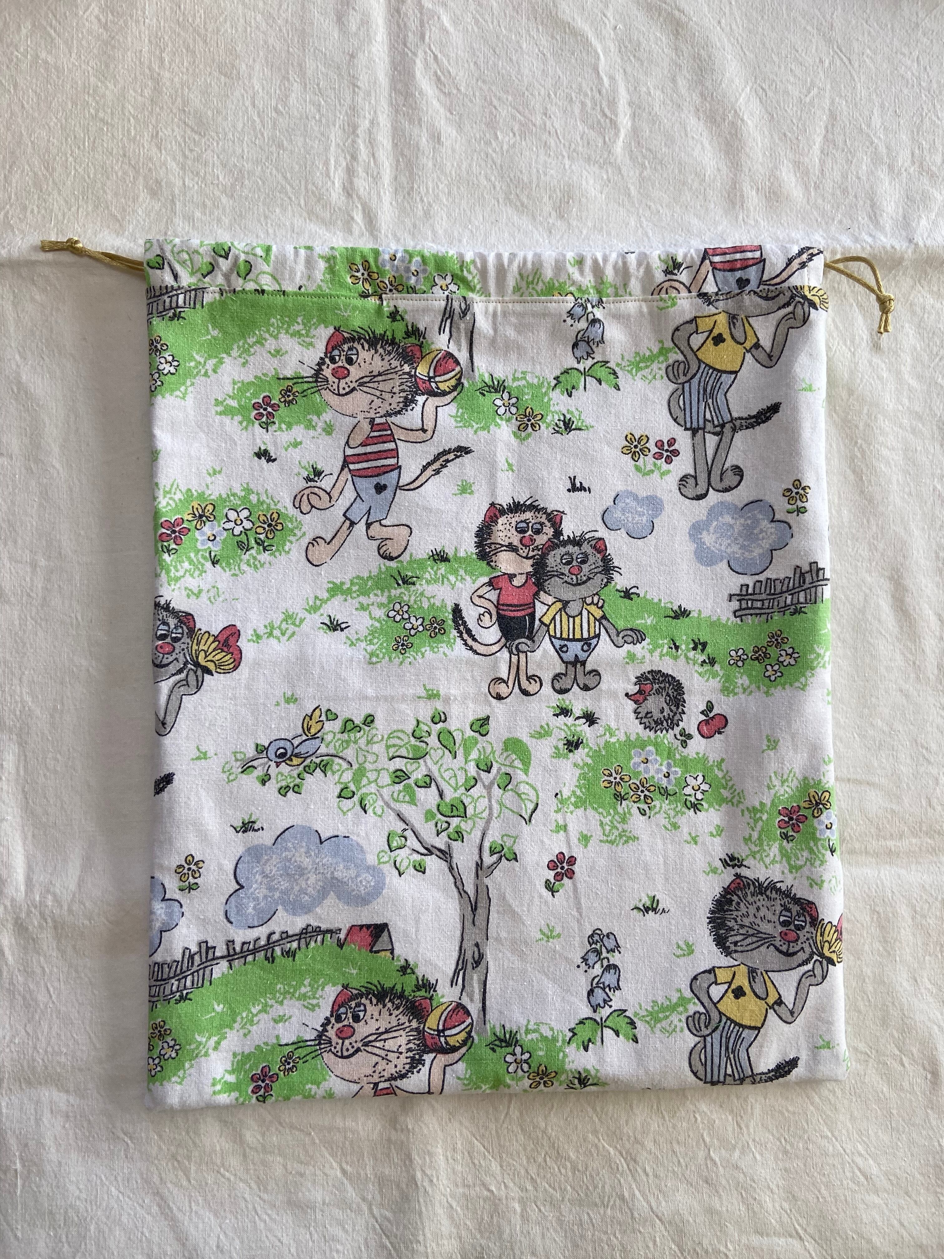 ヴィンテージファブリック ねこ巾着(大)