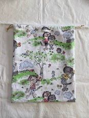 ヴィンテージファブリックで製作した巾着になります。