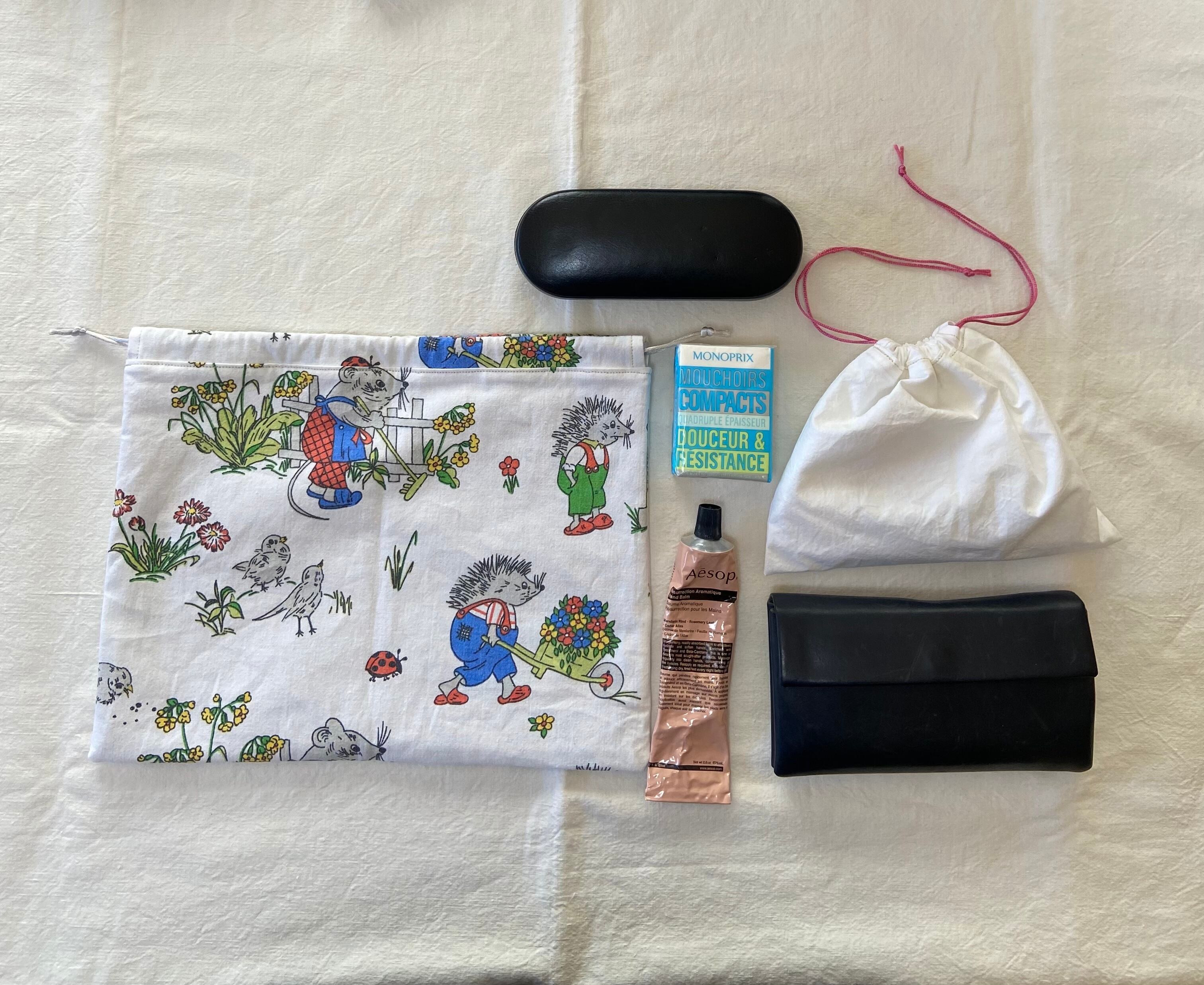 長財布やメガネケース、携帯、ハンカチ、小さい巾着などがすっぽり収まるサイズ感で、バッグインバッグとしても活用していただけるかと思います。