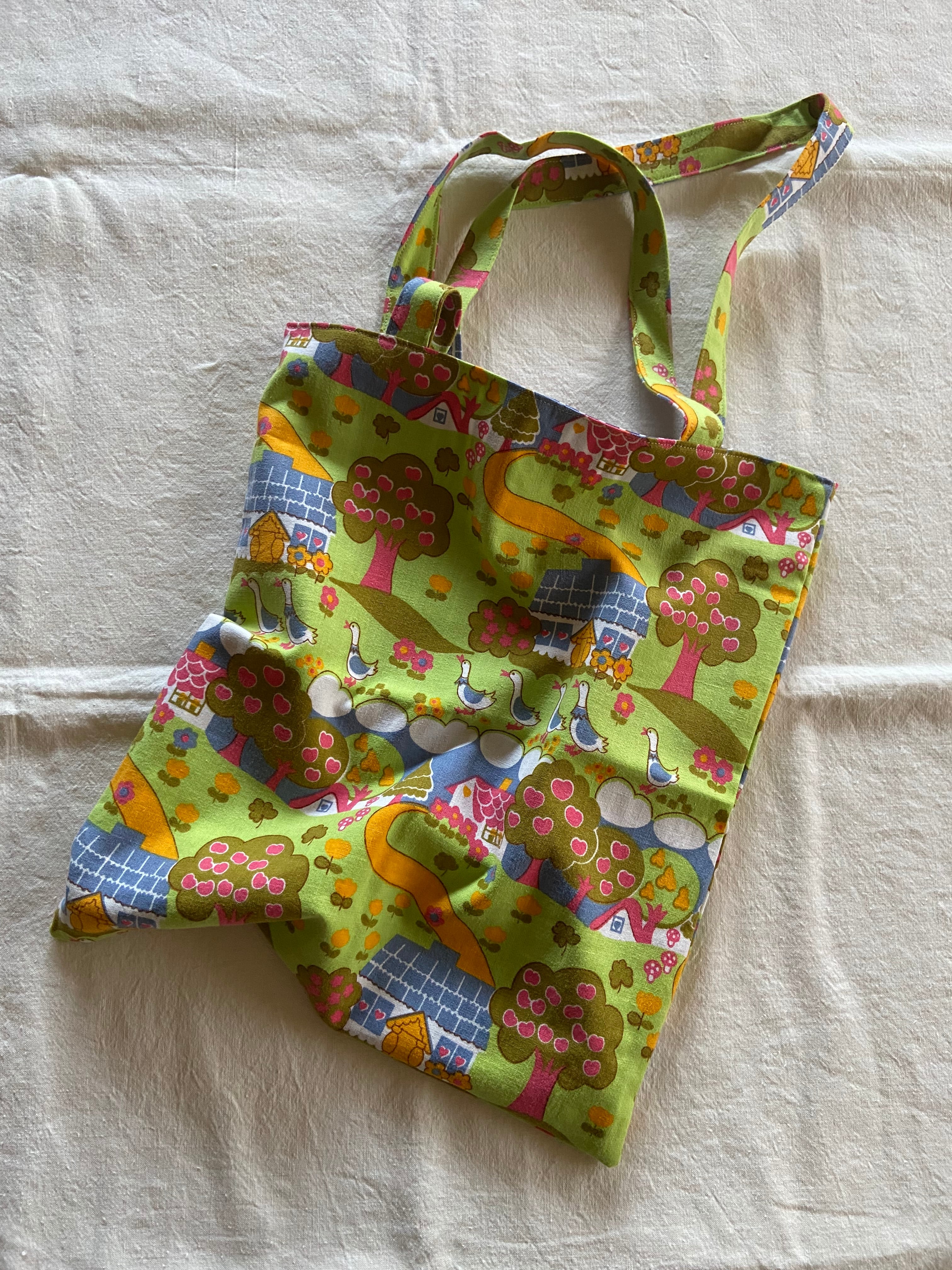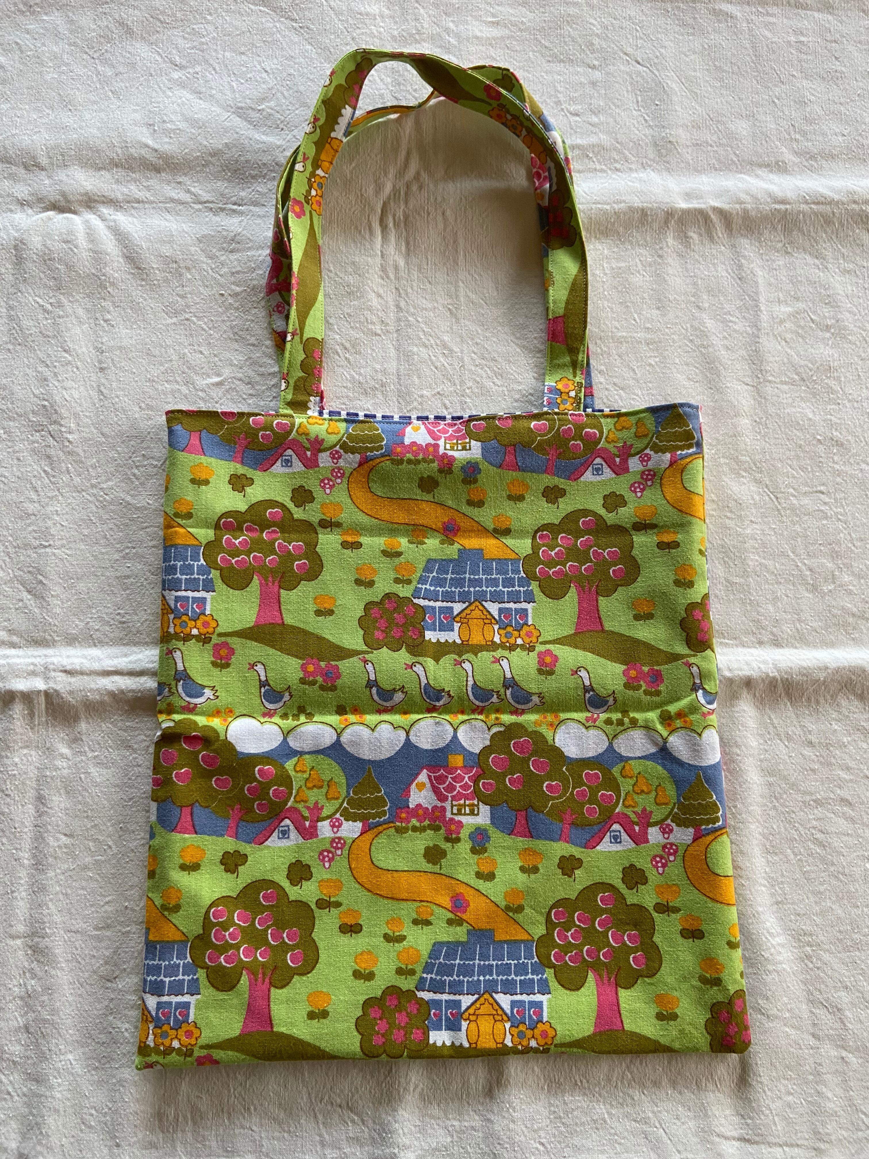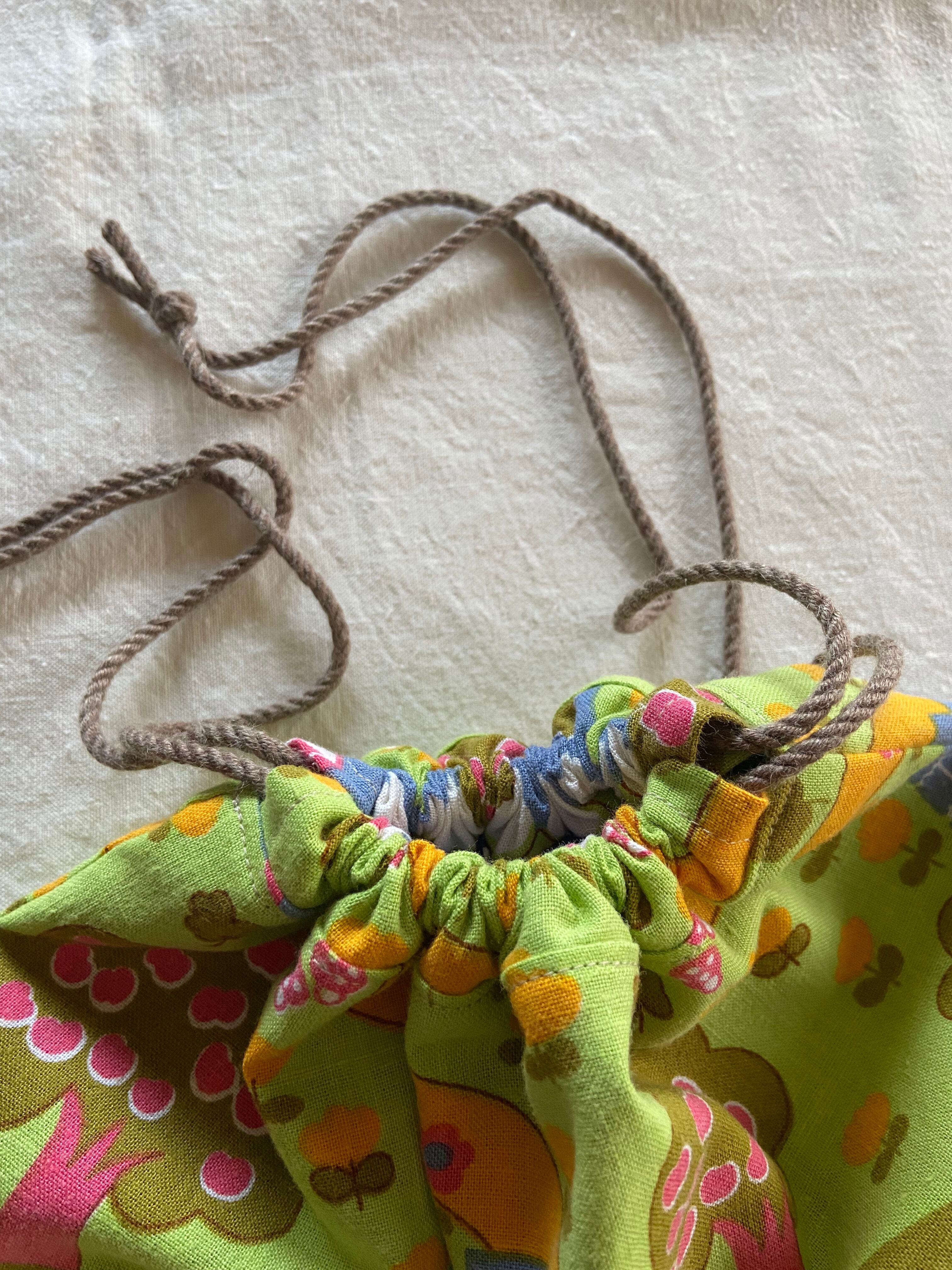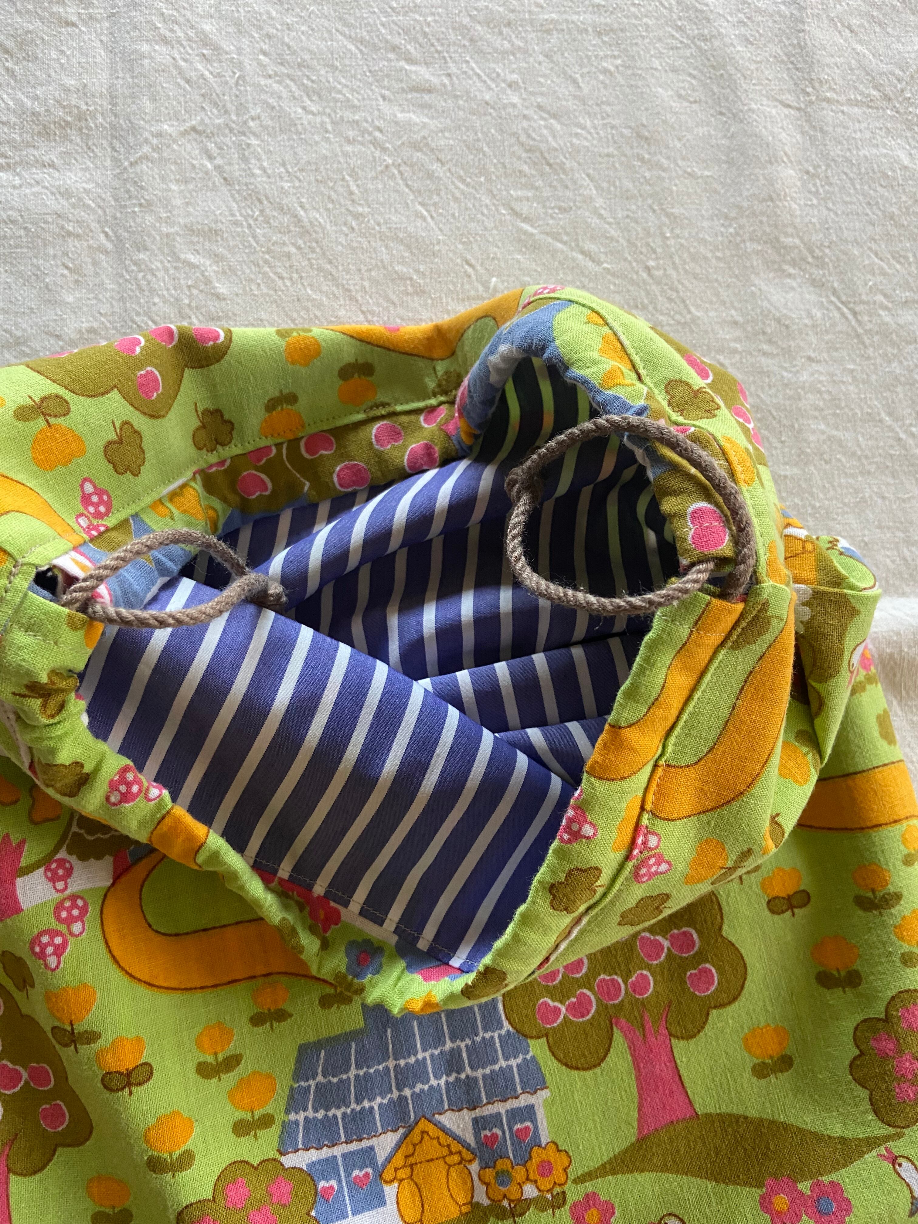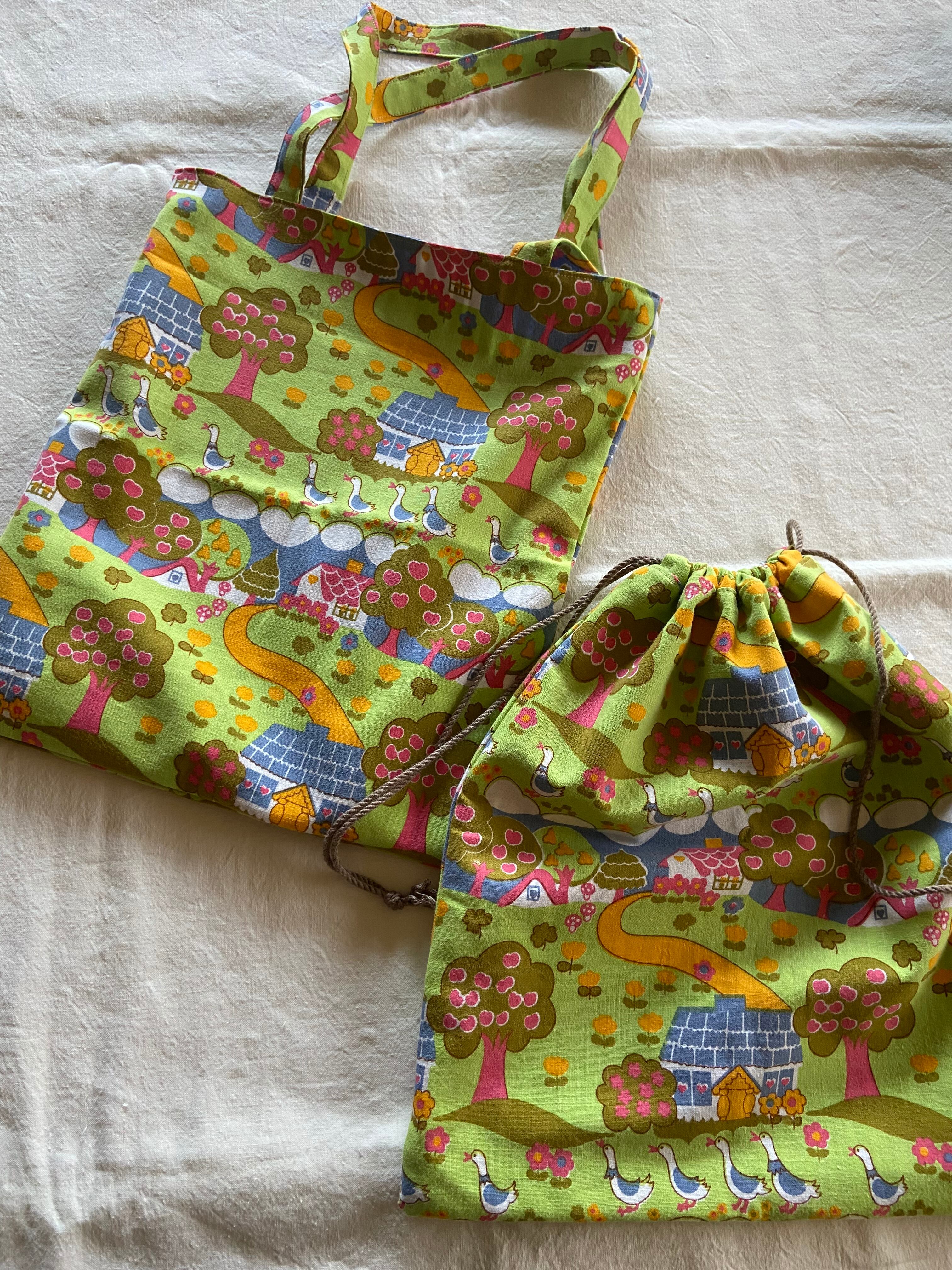 ヴィンテージシーツで製作したバッグと巾着袋の2点セットになります。