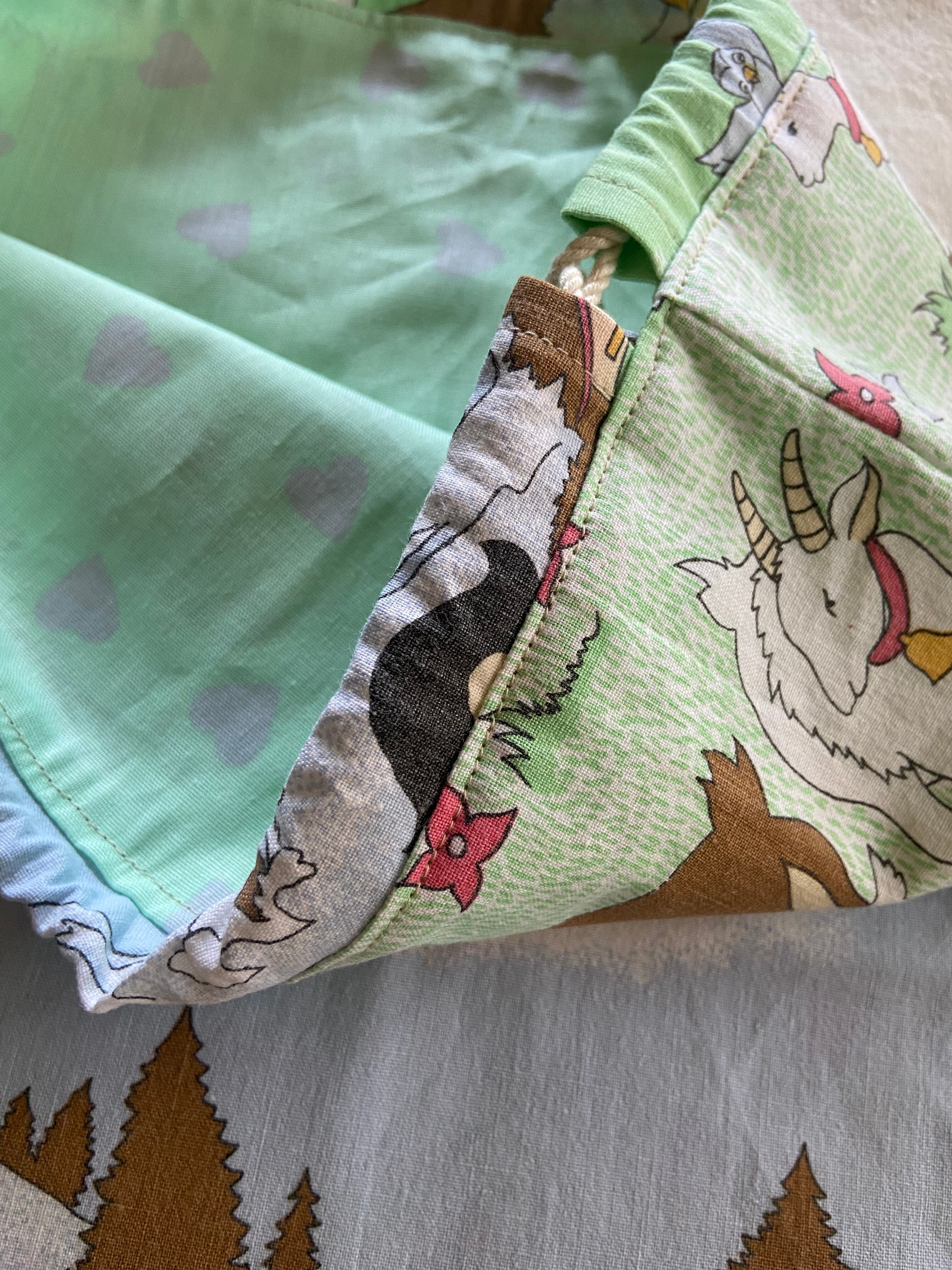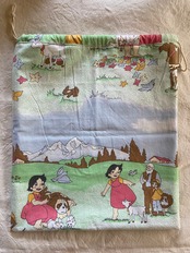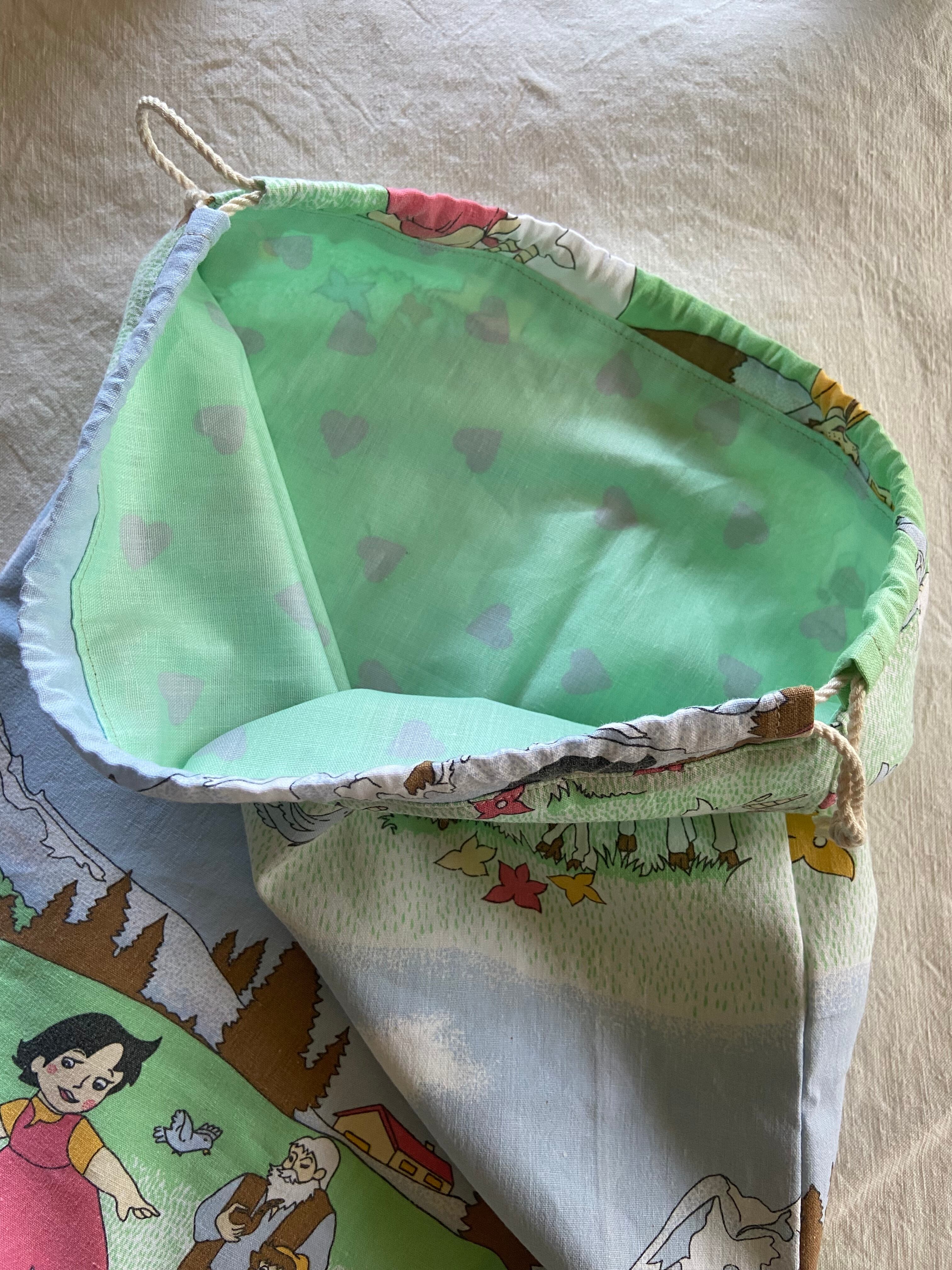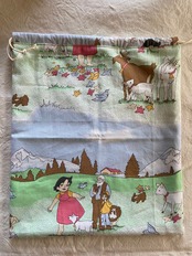 アルプスの少女ハイジのビンテージシーツ(フランス)で制作した巾着になります。