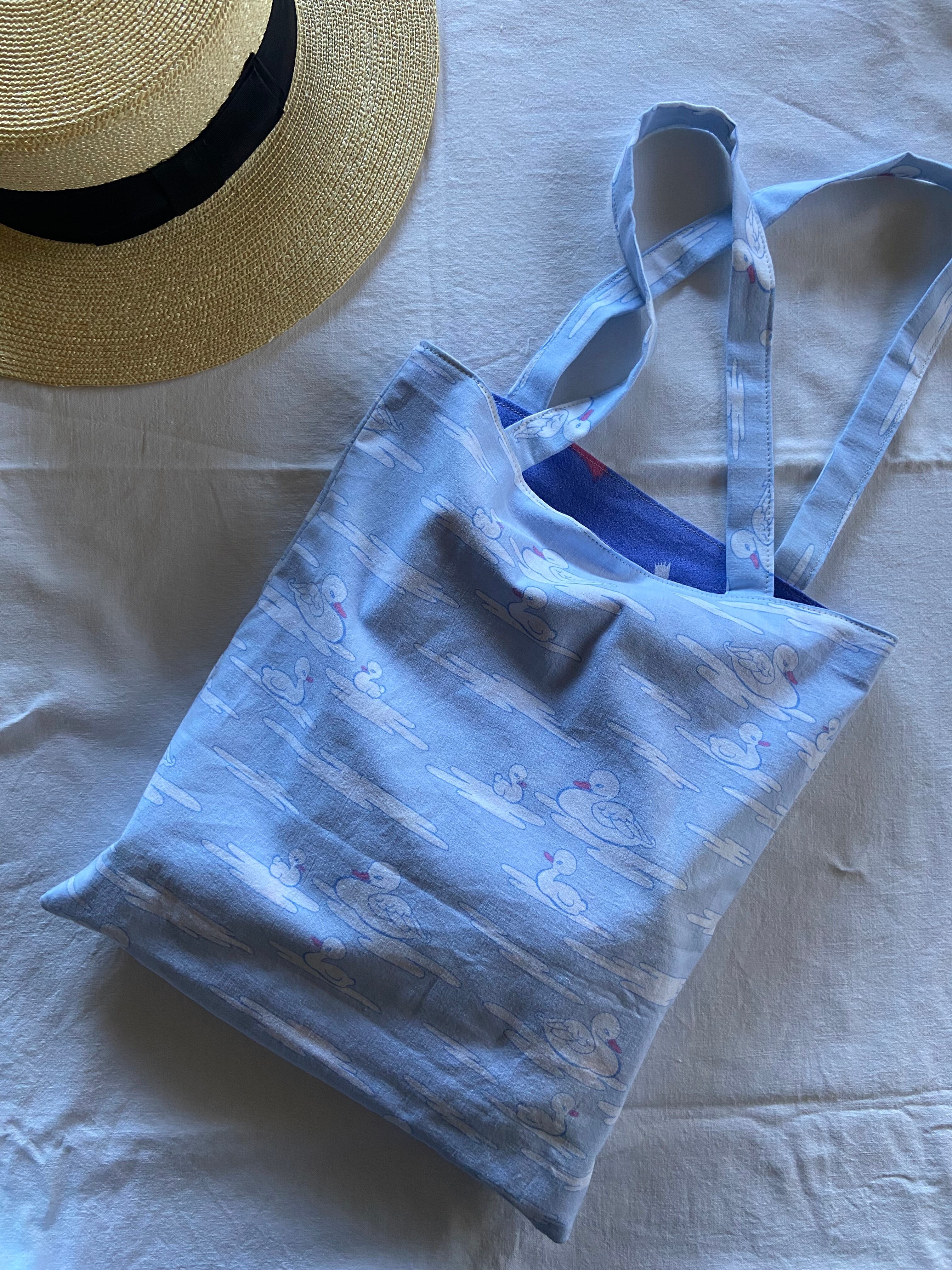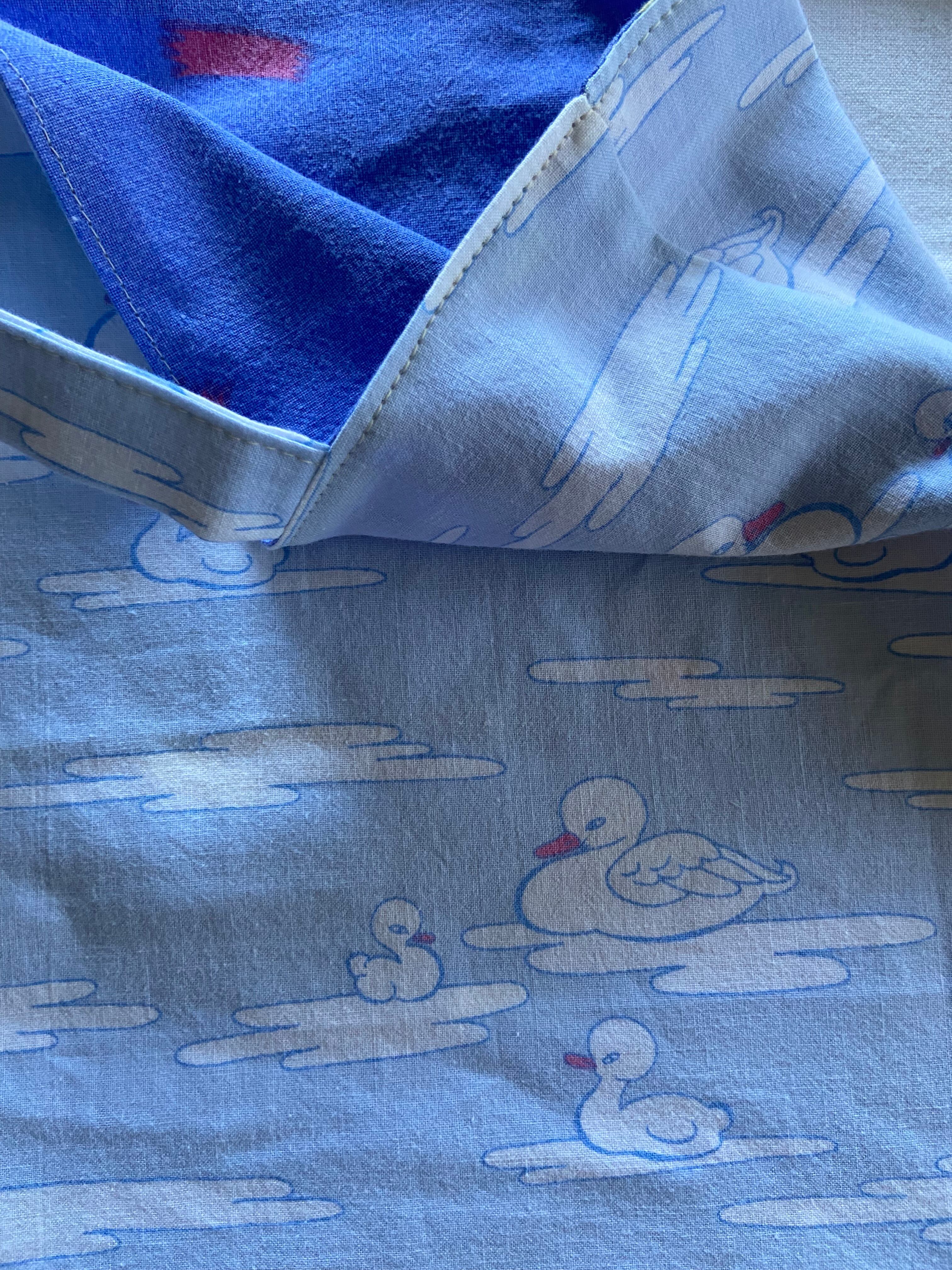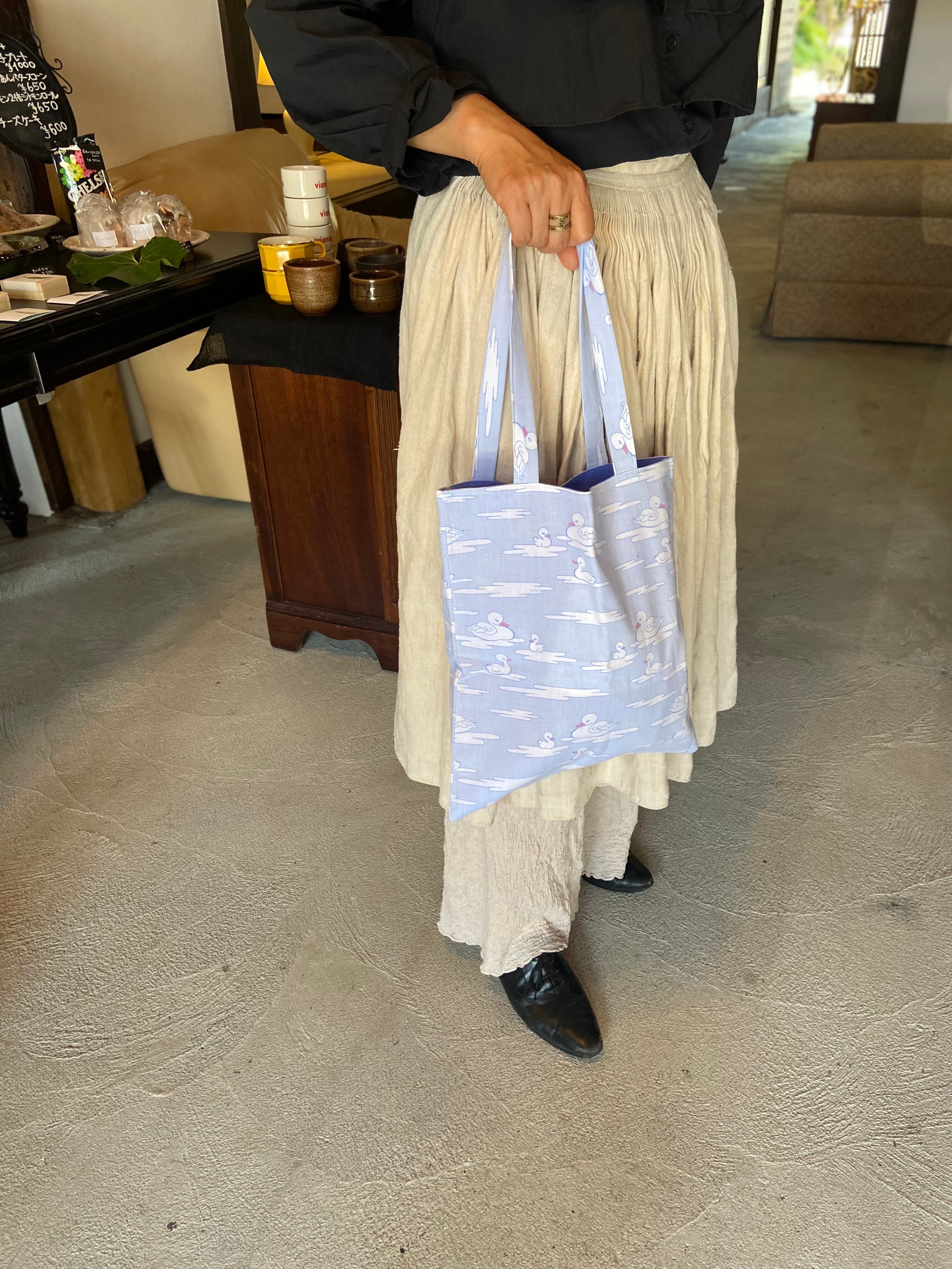 フランスのヴィンテージファブリックで製作いたしました。ブルーの内布も同じくフランスビンテージファブリックでポップに合わせてみました。