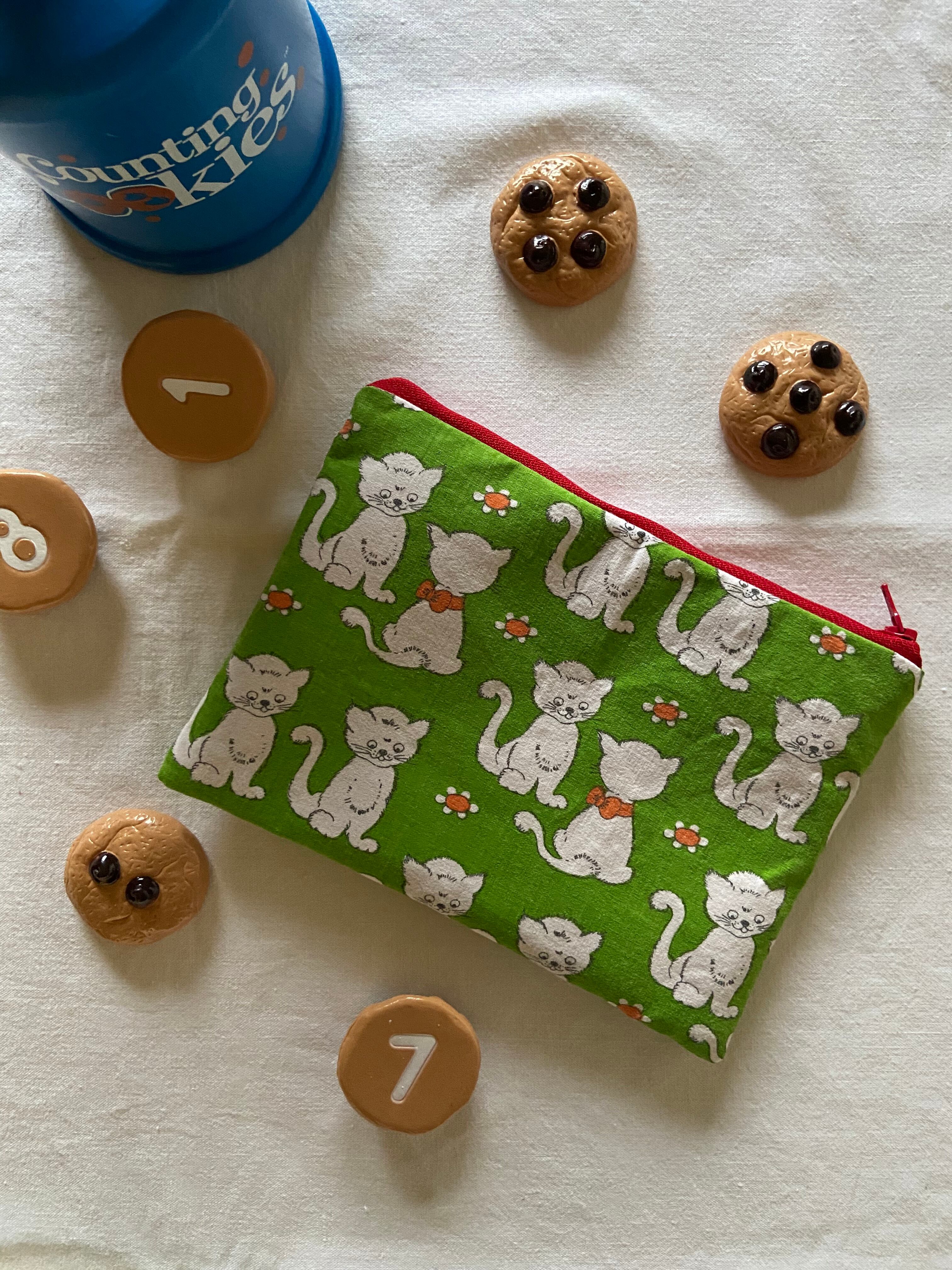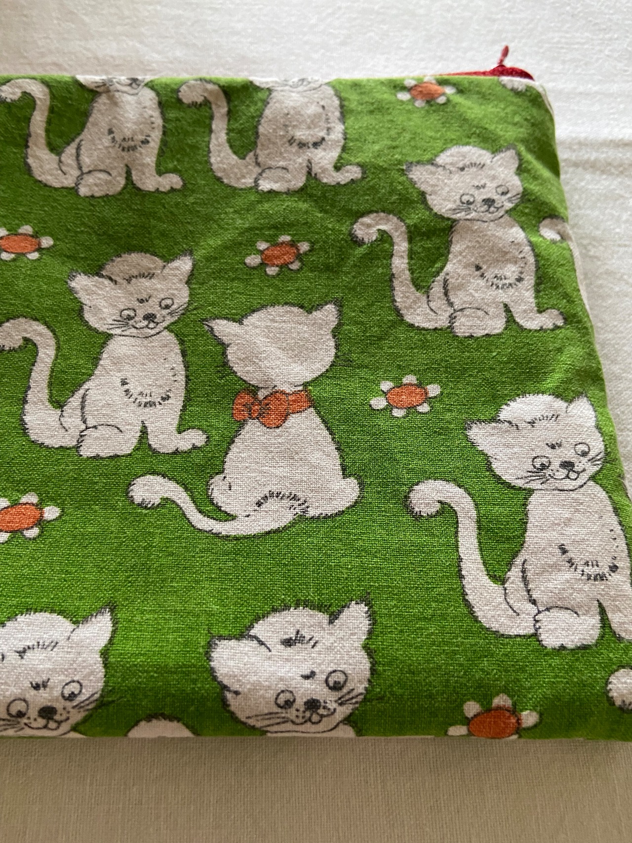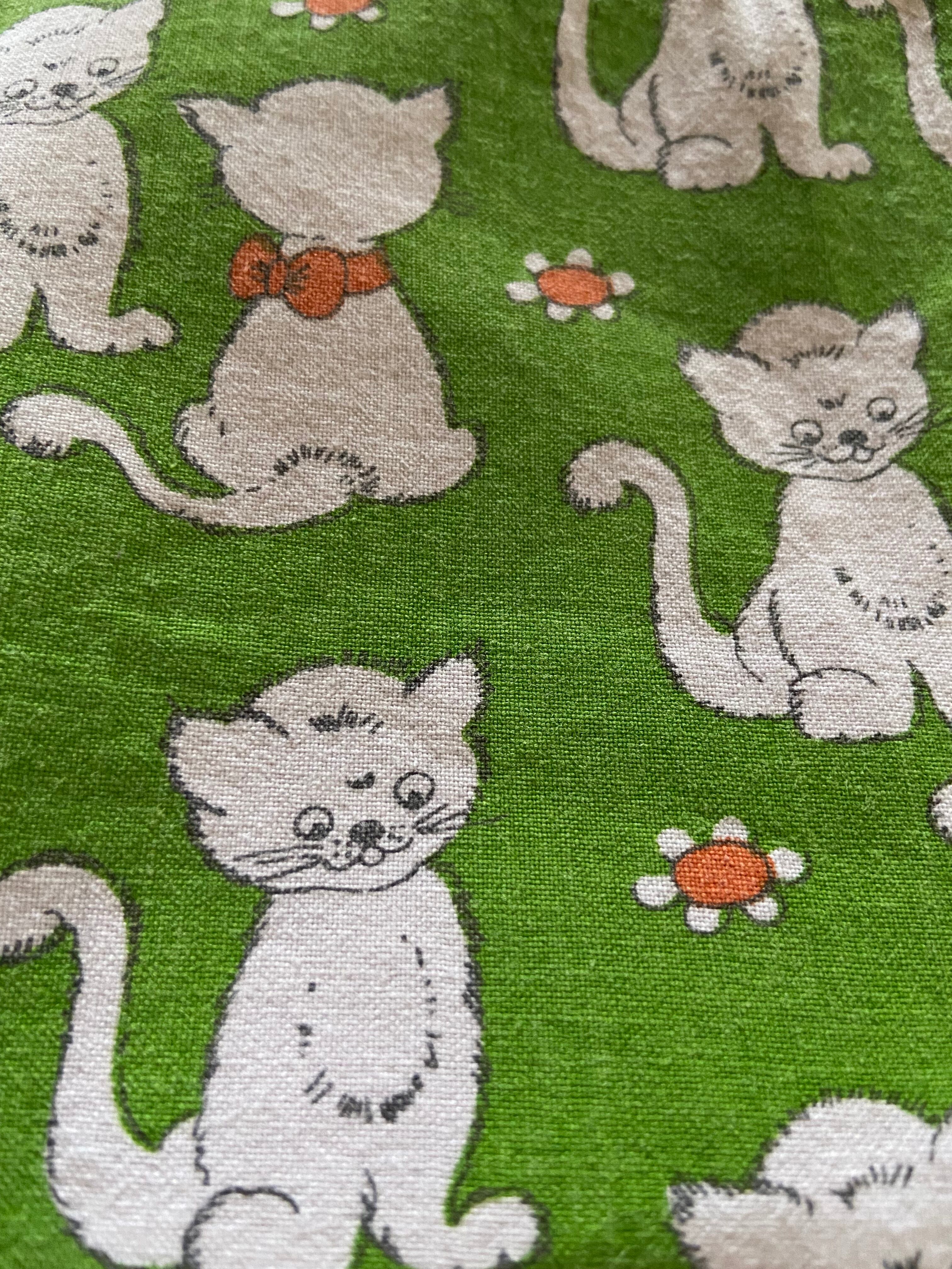 グリーンベイスの生地にぞろぞろと猫ちゃんがたくさん♫