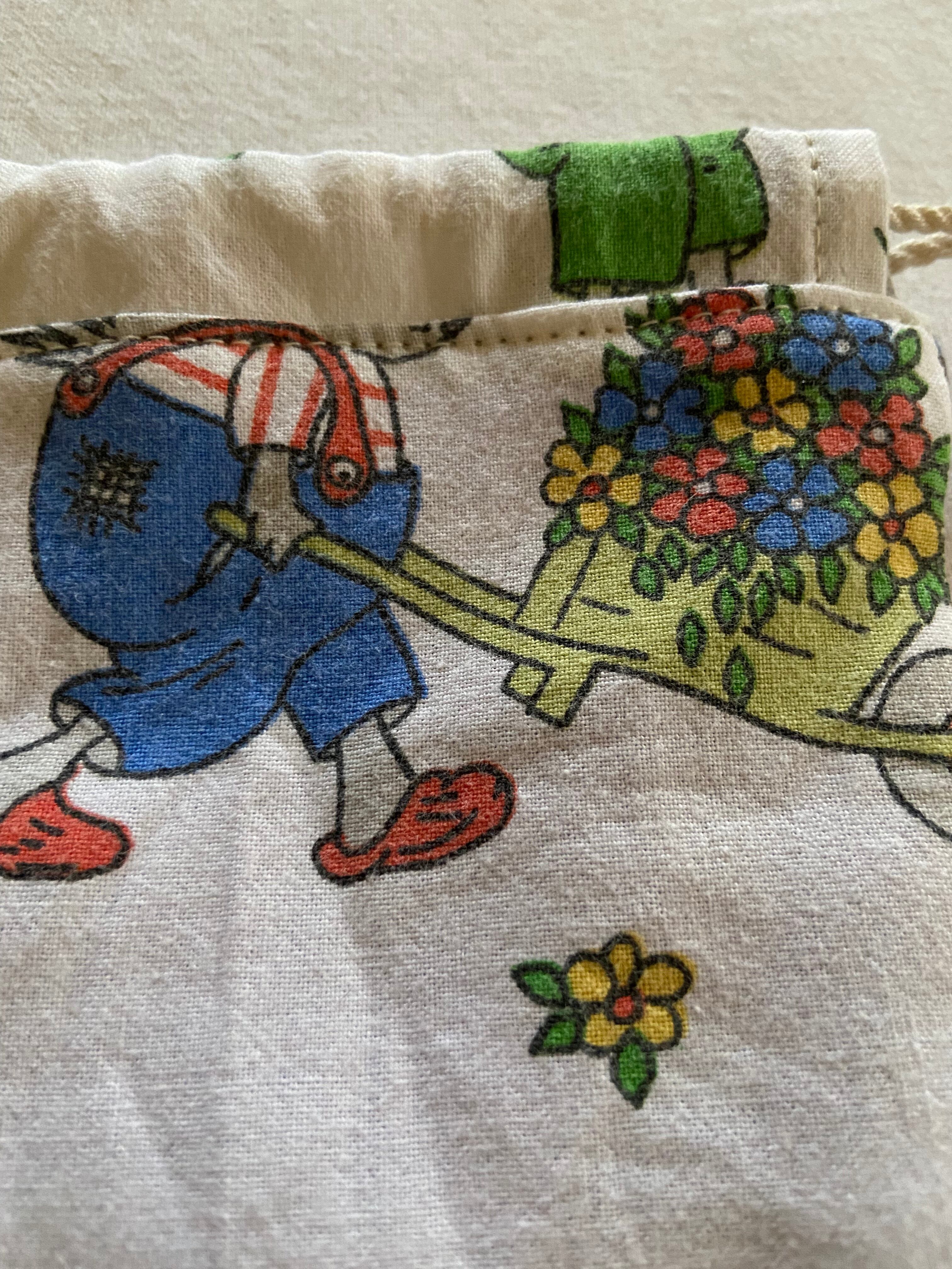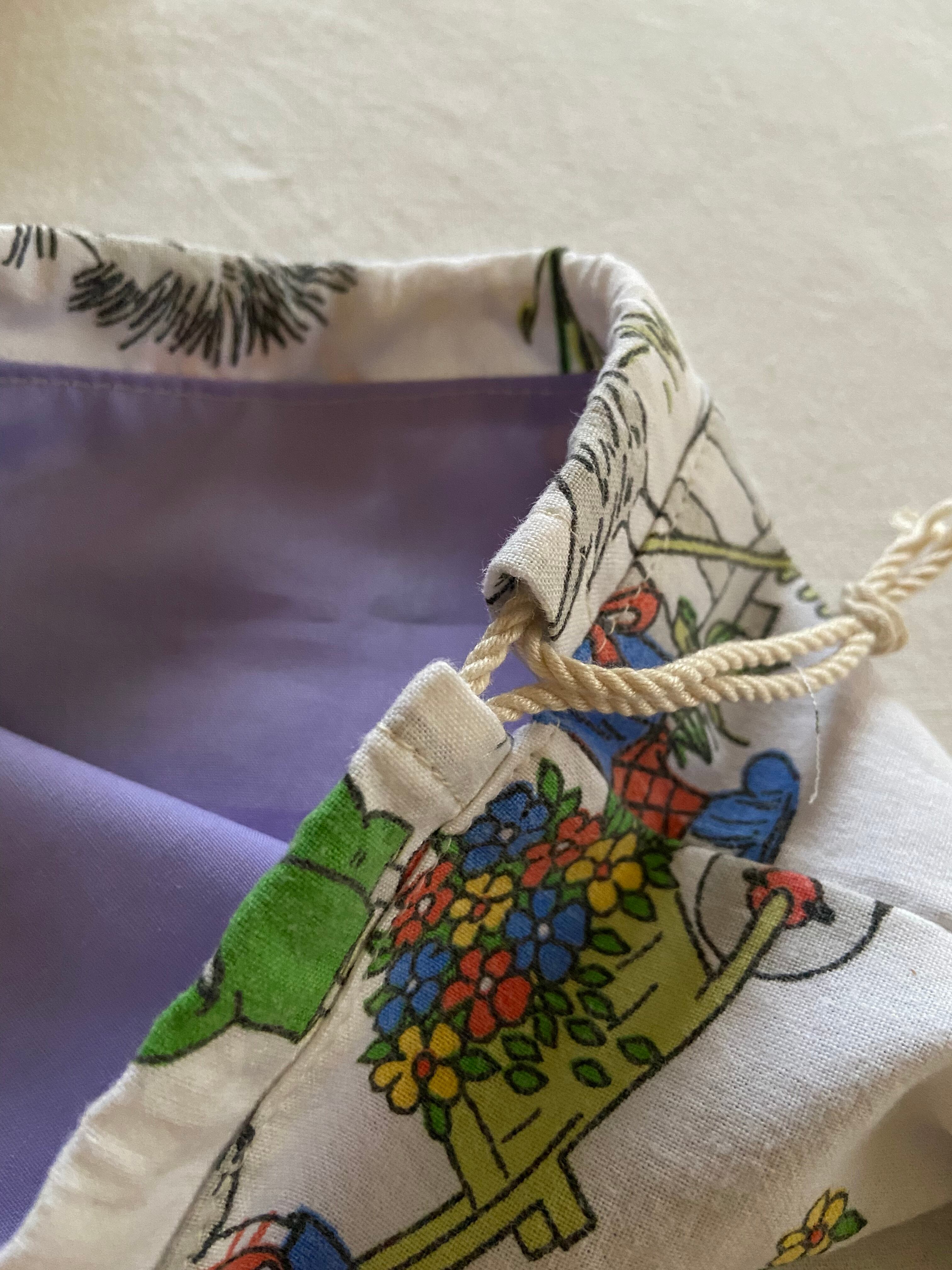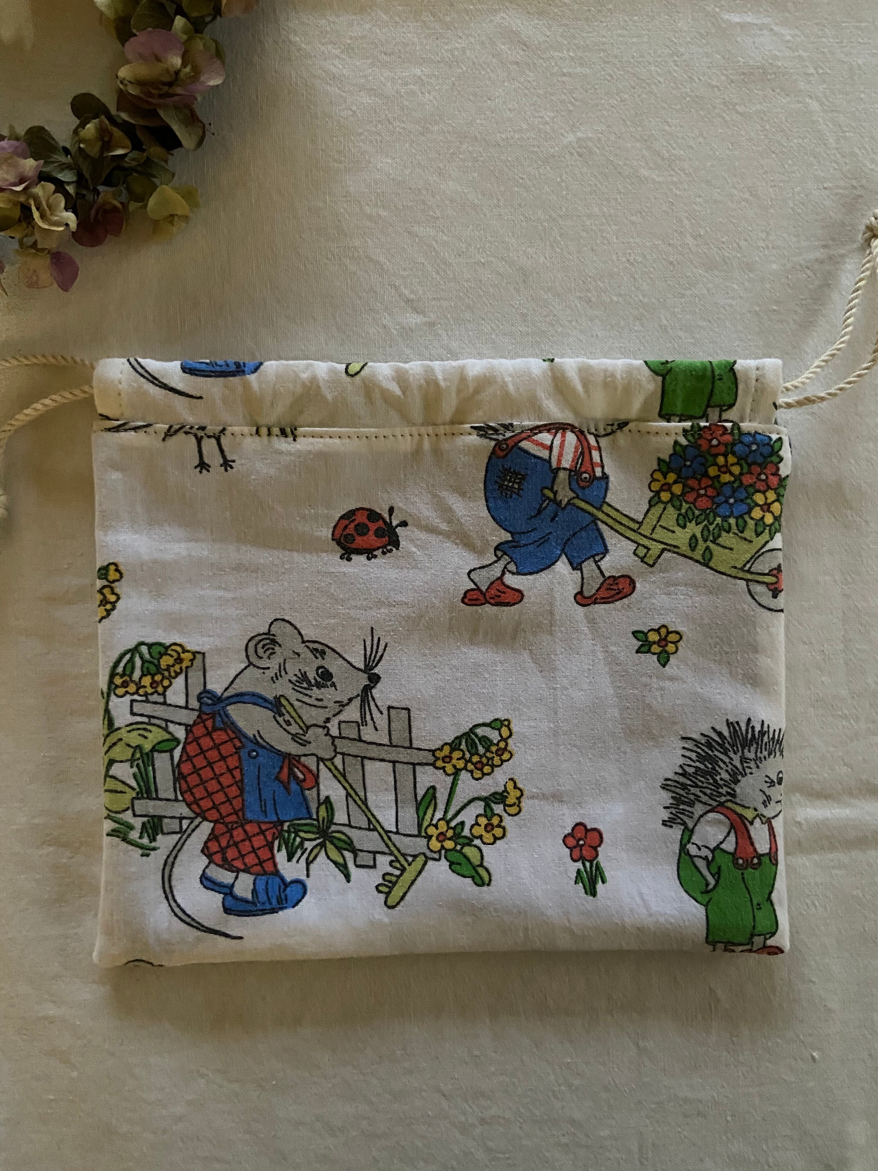 ドイツのヴィンテージファブリックで制作した巾着なります。