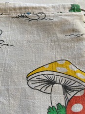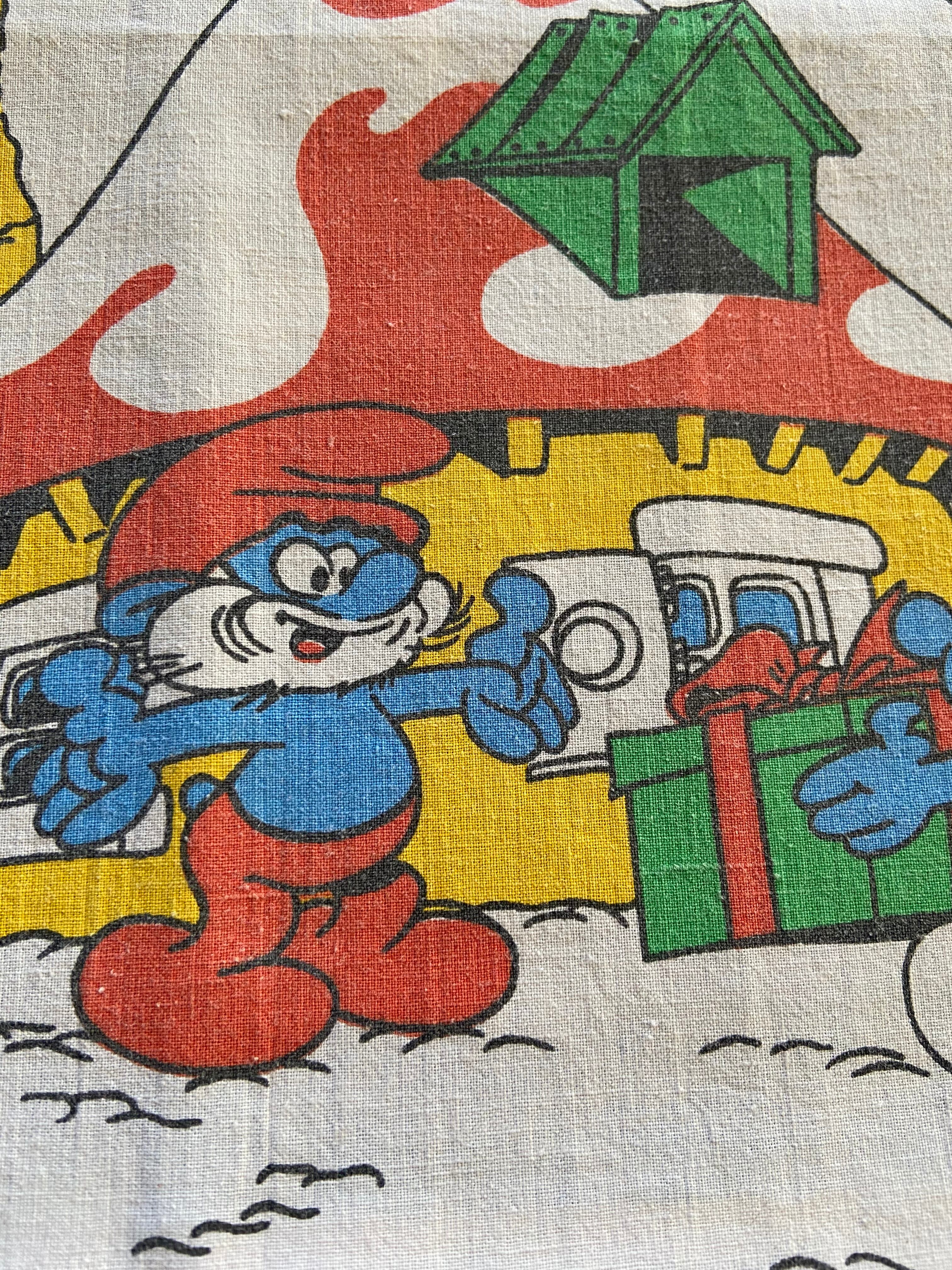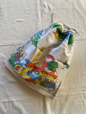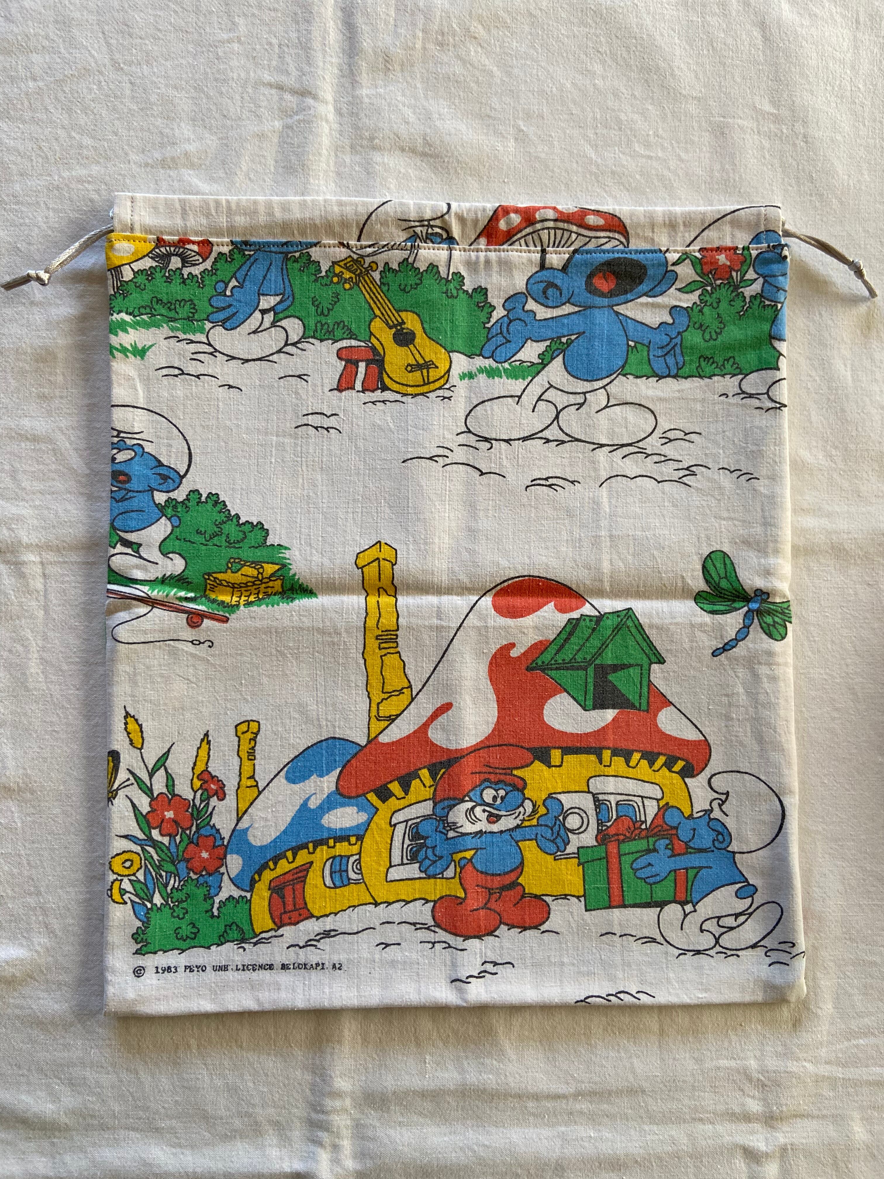 フランスのビンテージシーツで製作したスマーフのバッグになります。
