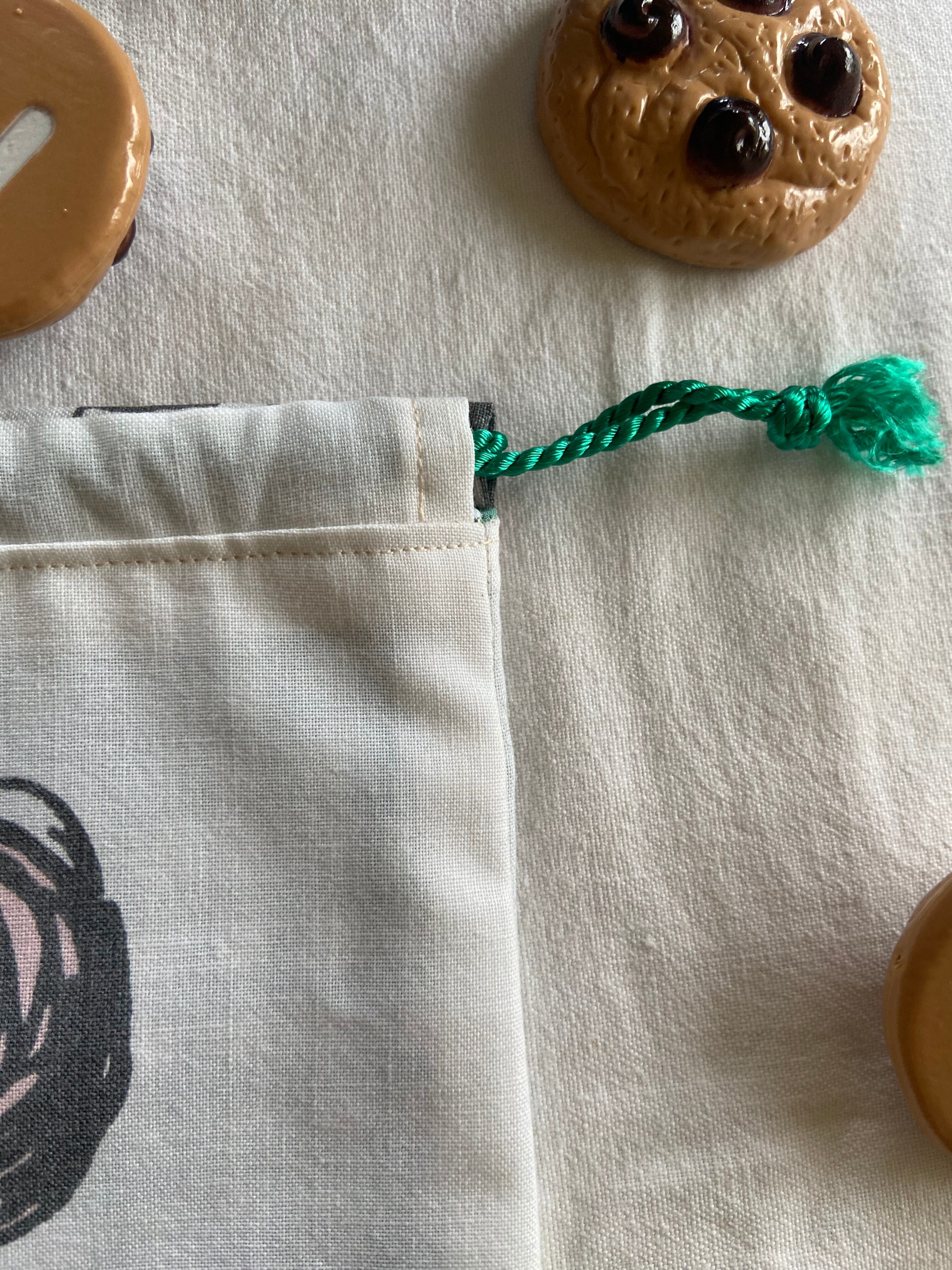 内布は高密度のコットン素材を合わせました。グリーンのギンガムチェックが巾着を開けた時にチラリと見える様子が可愛いです。