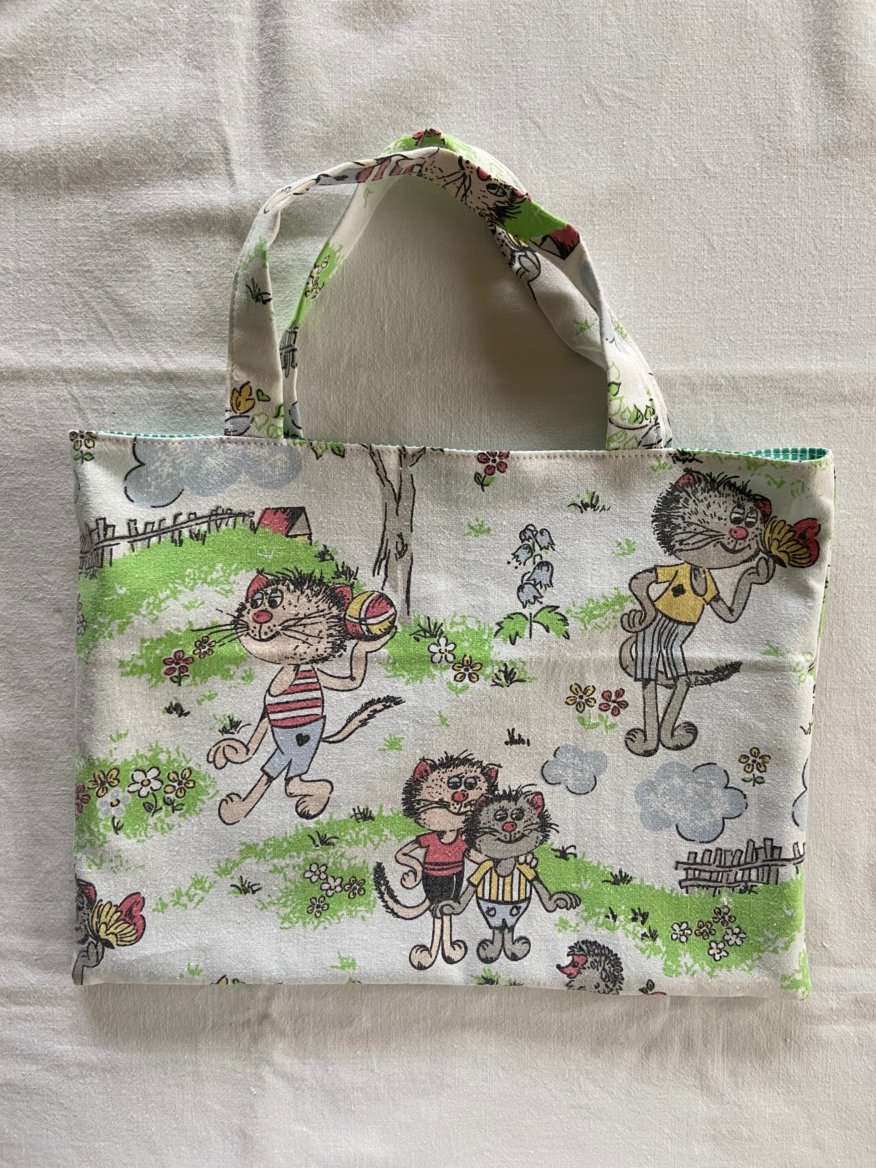眠そうなおとぼけ顔の猫ちゃんたちがほのぼの探している様子にほっこりのバッグ