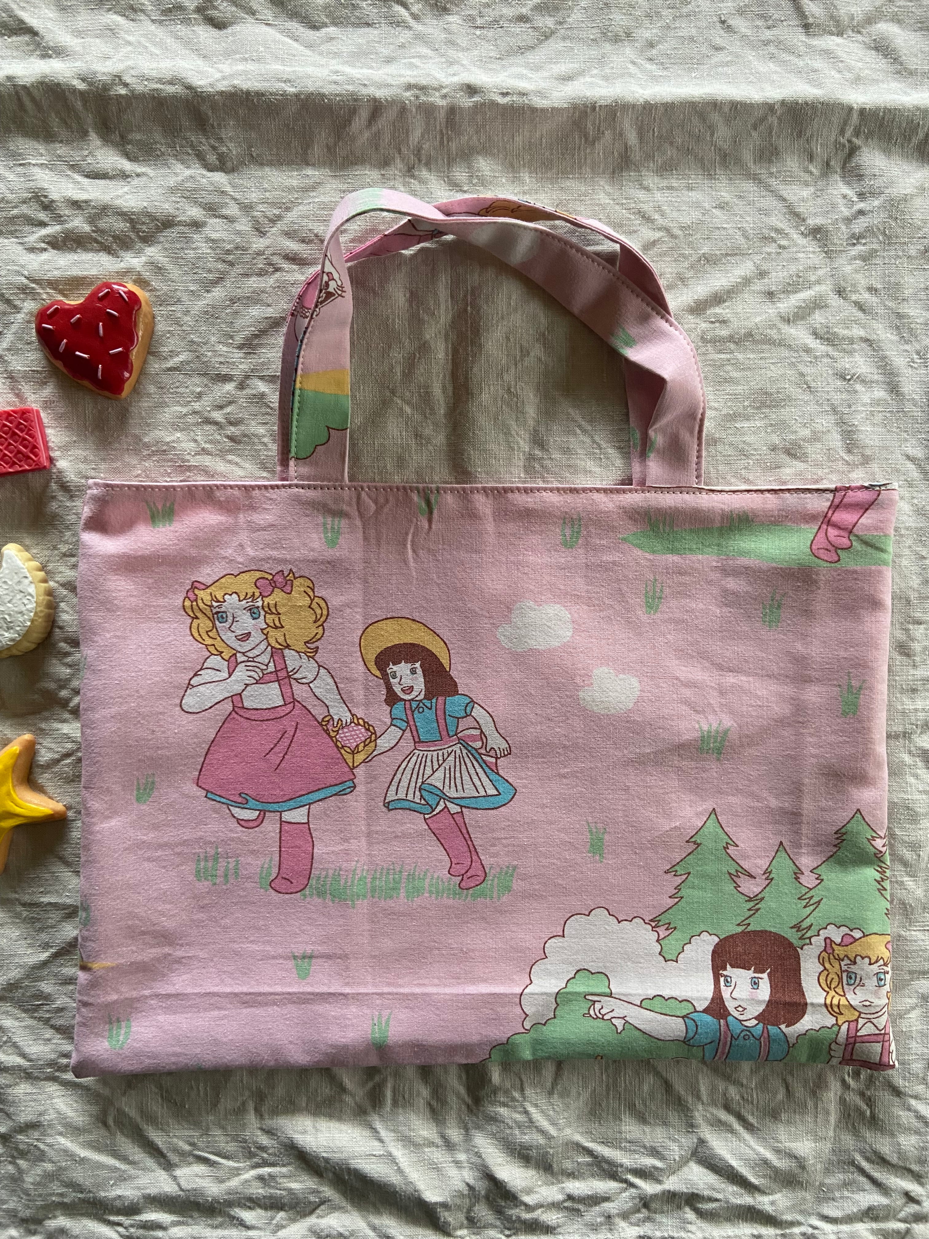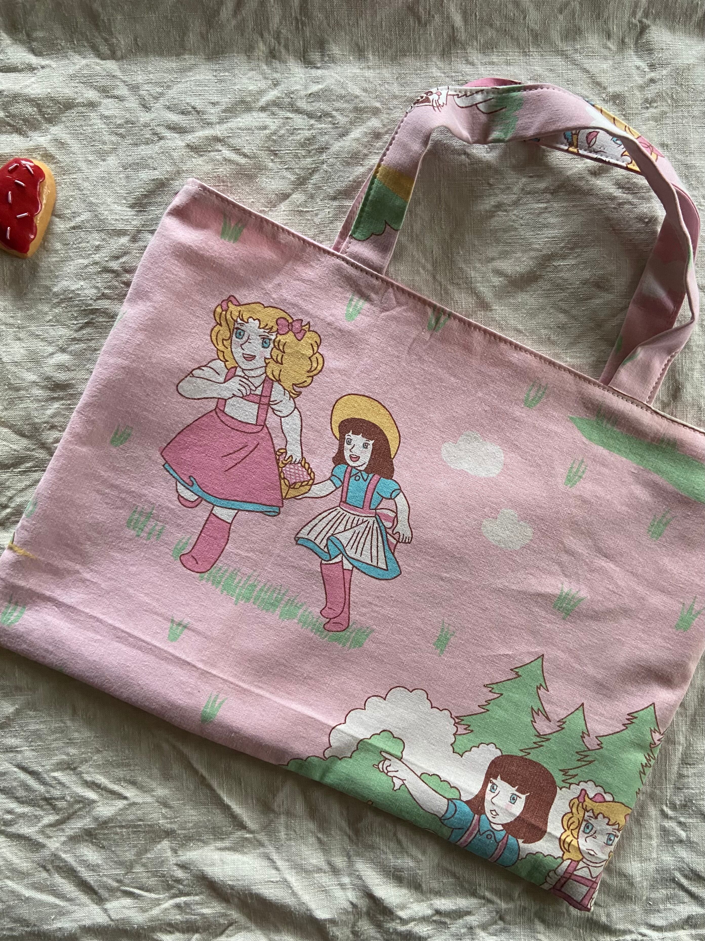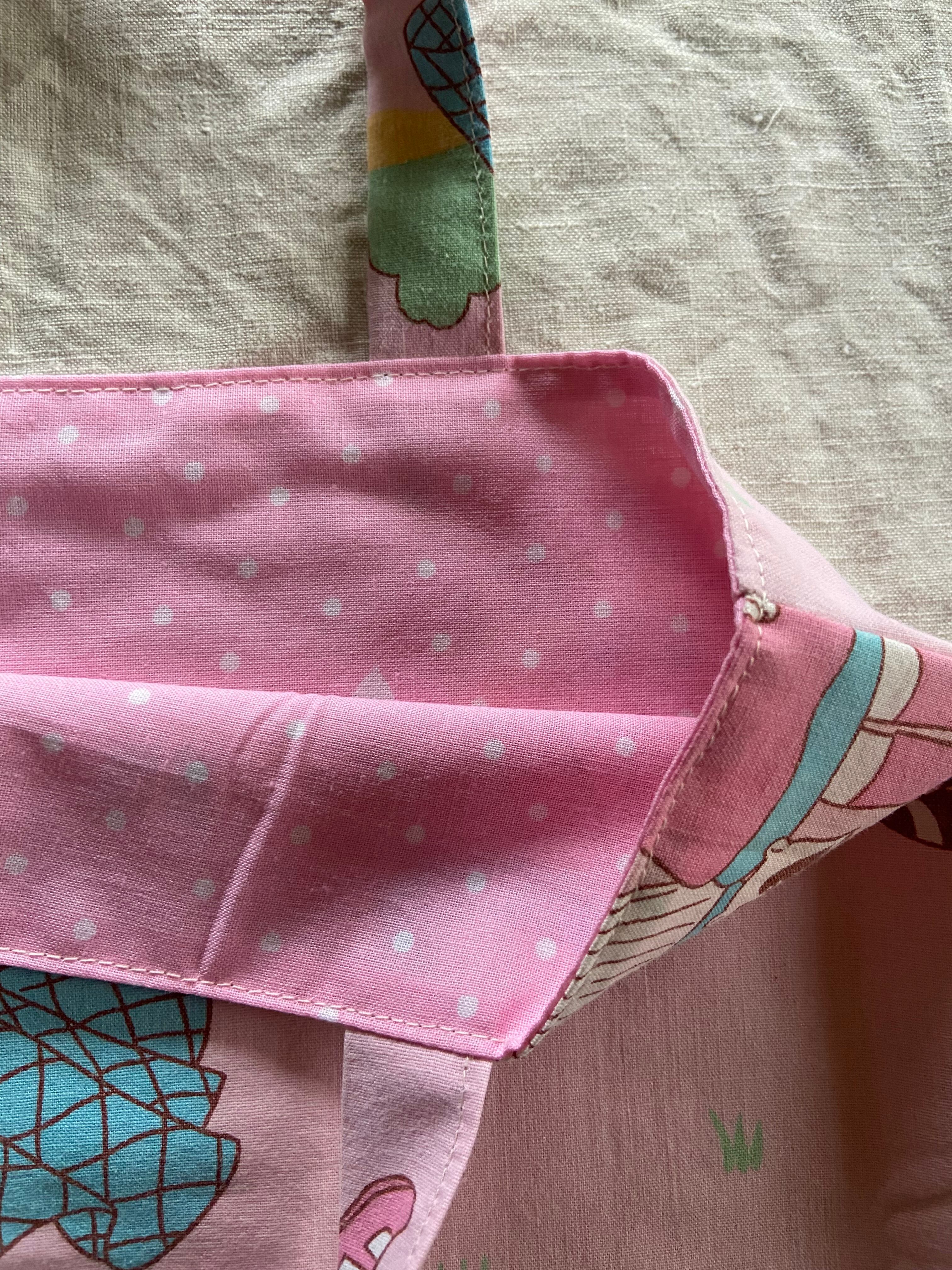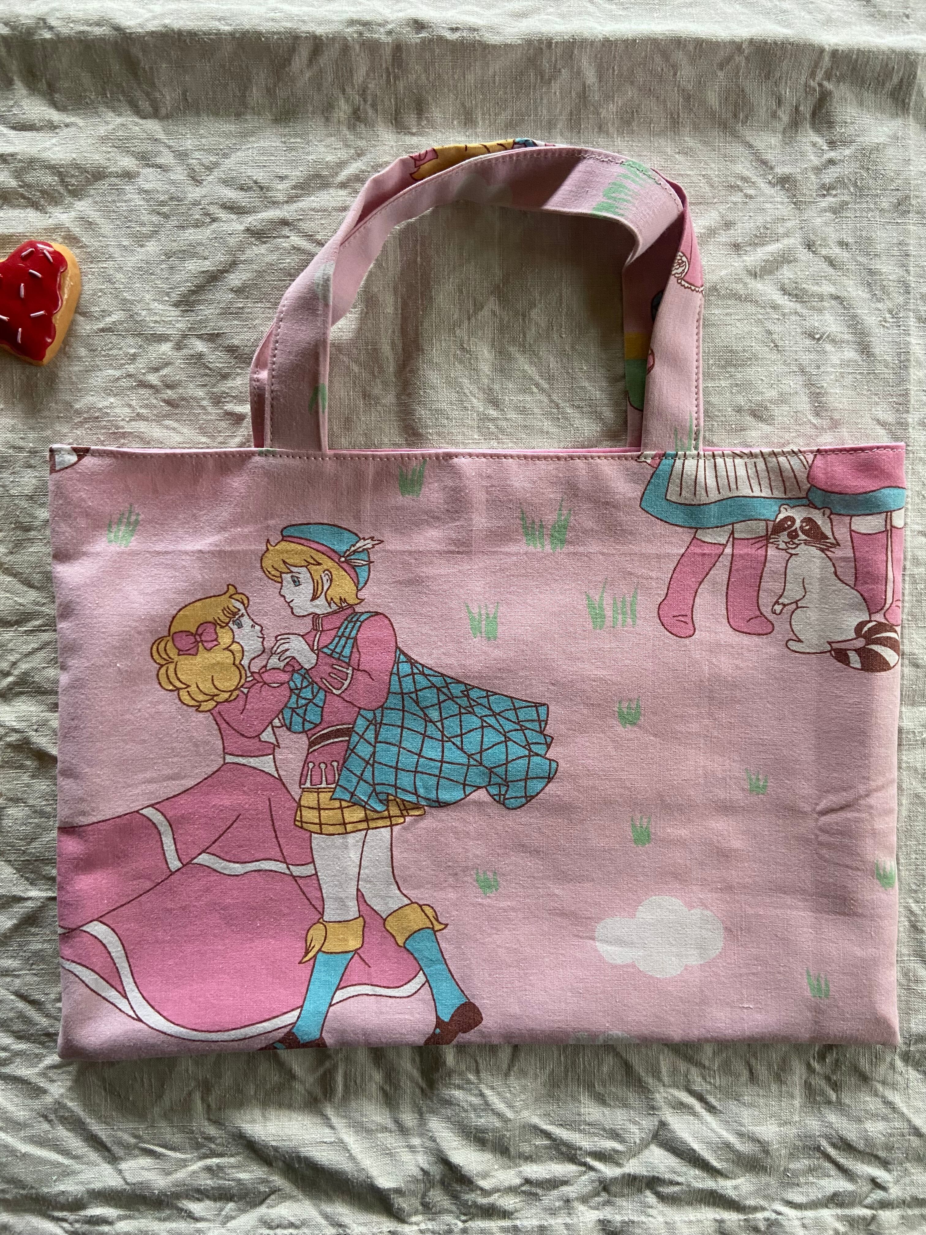 フランスののヴィンテージシーツで製作したお散歩バッグ