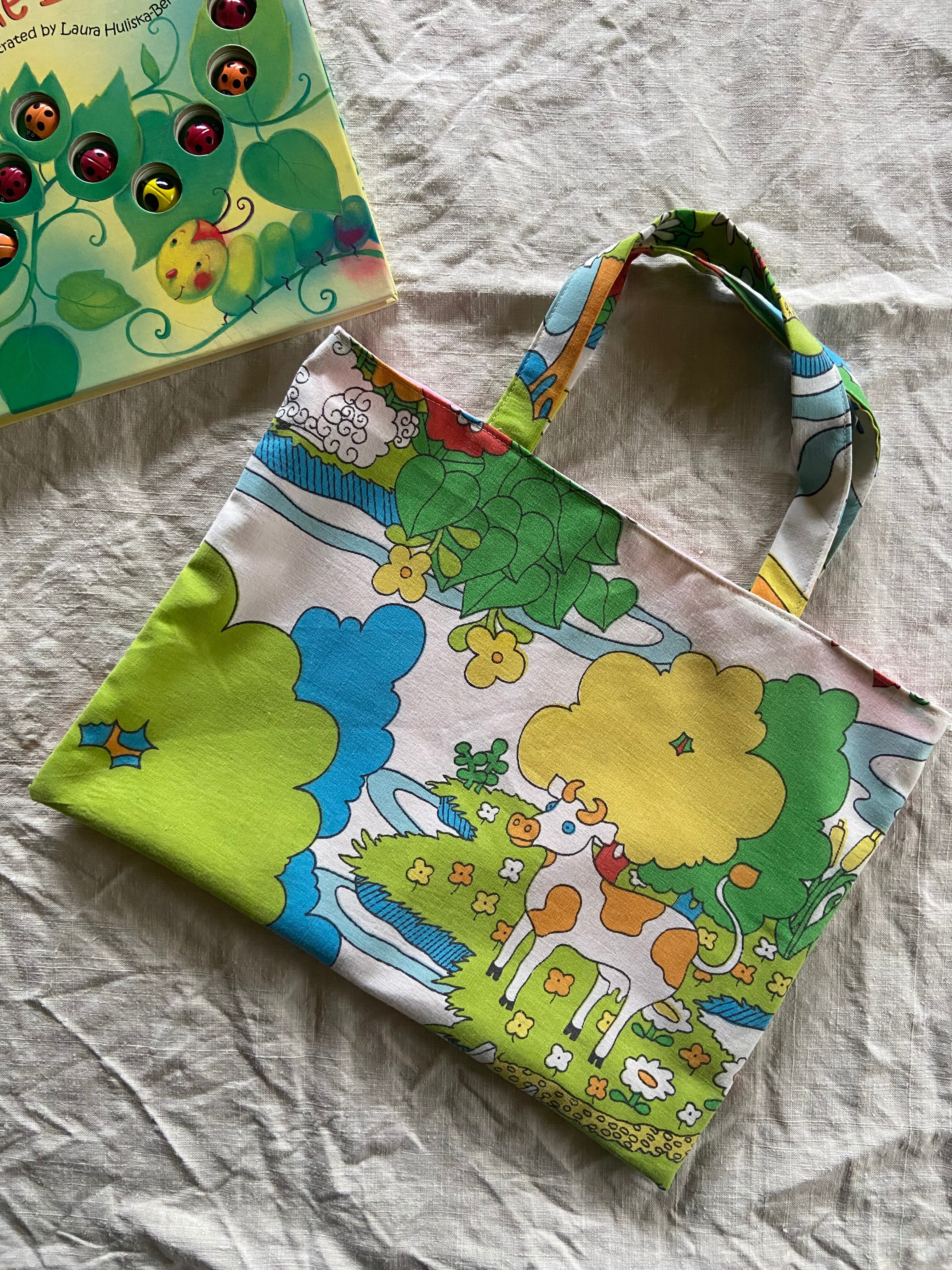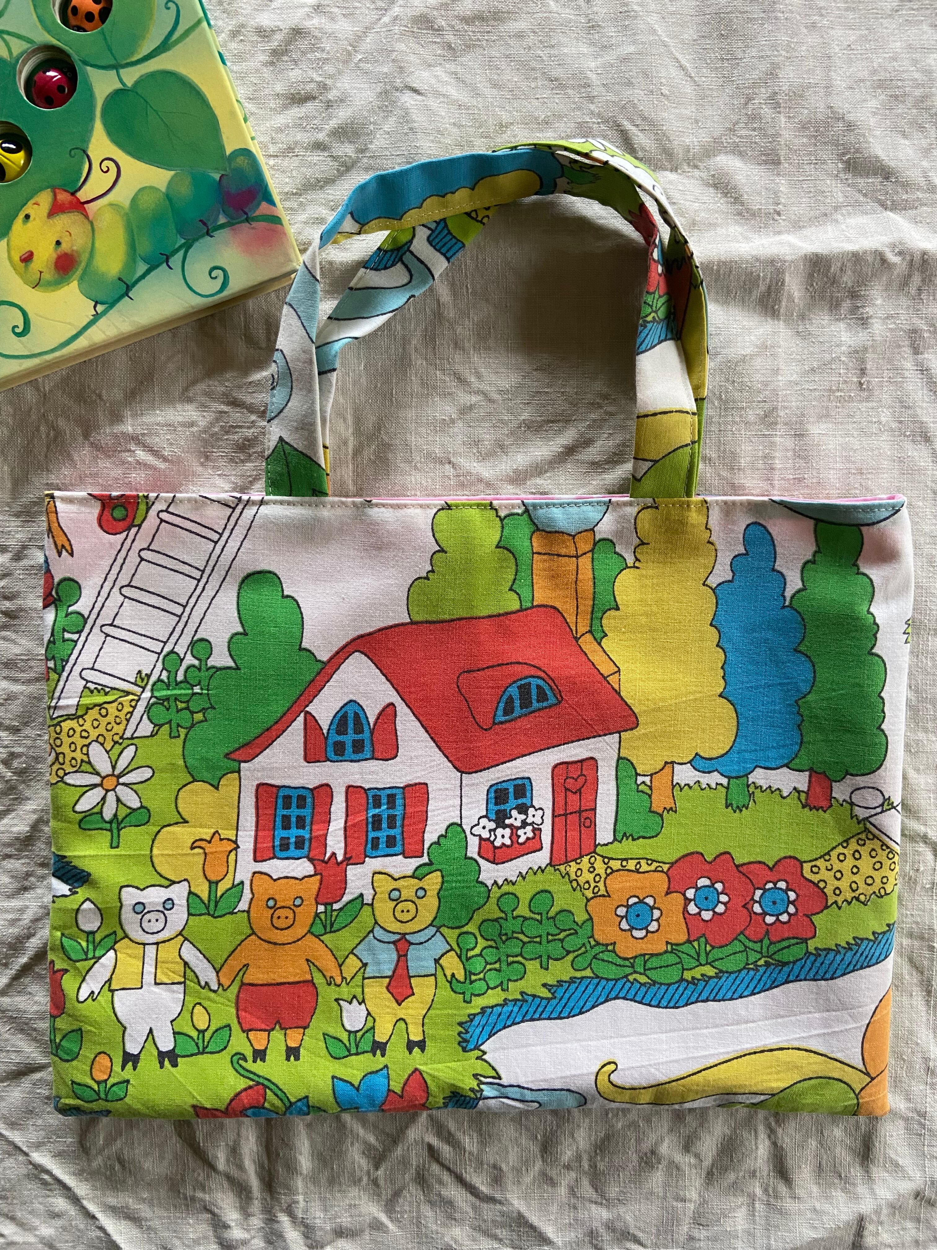 ドイツのヴィンテージシーツで製作したお散歩バッグ