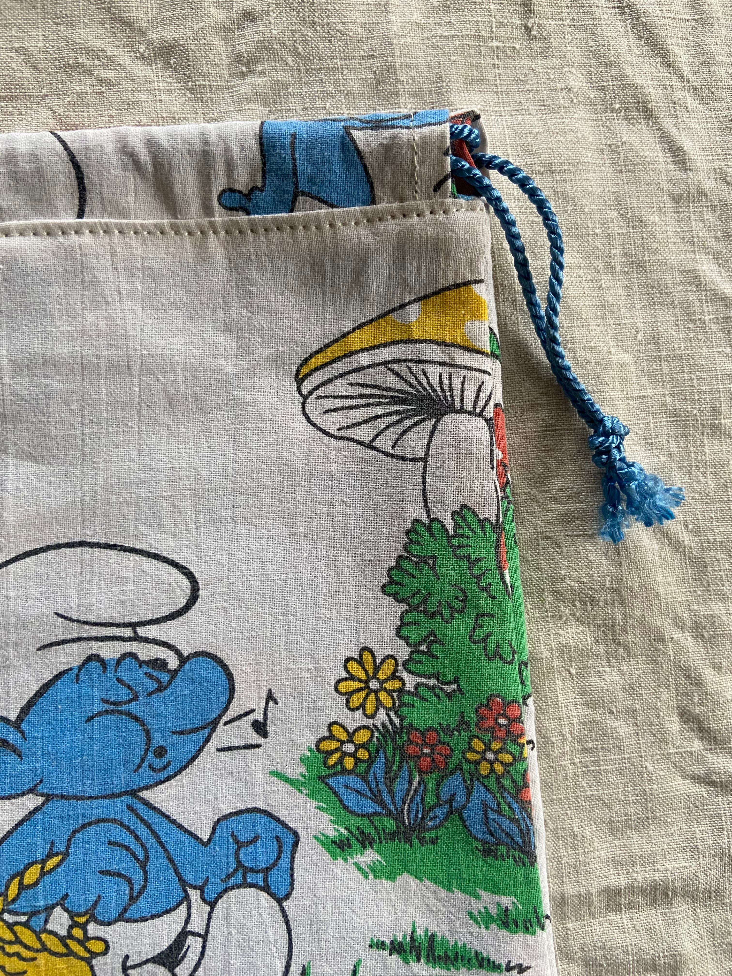フランスのヴィンテージシーツで制作した巾着(大サイズ)になります。