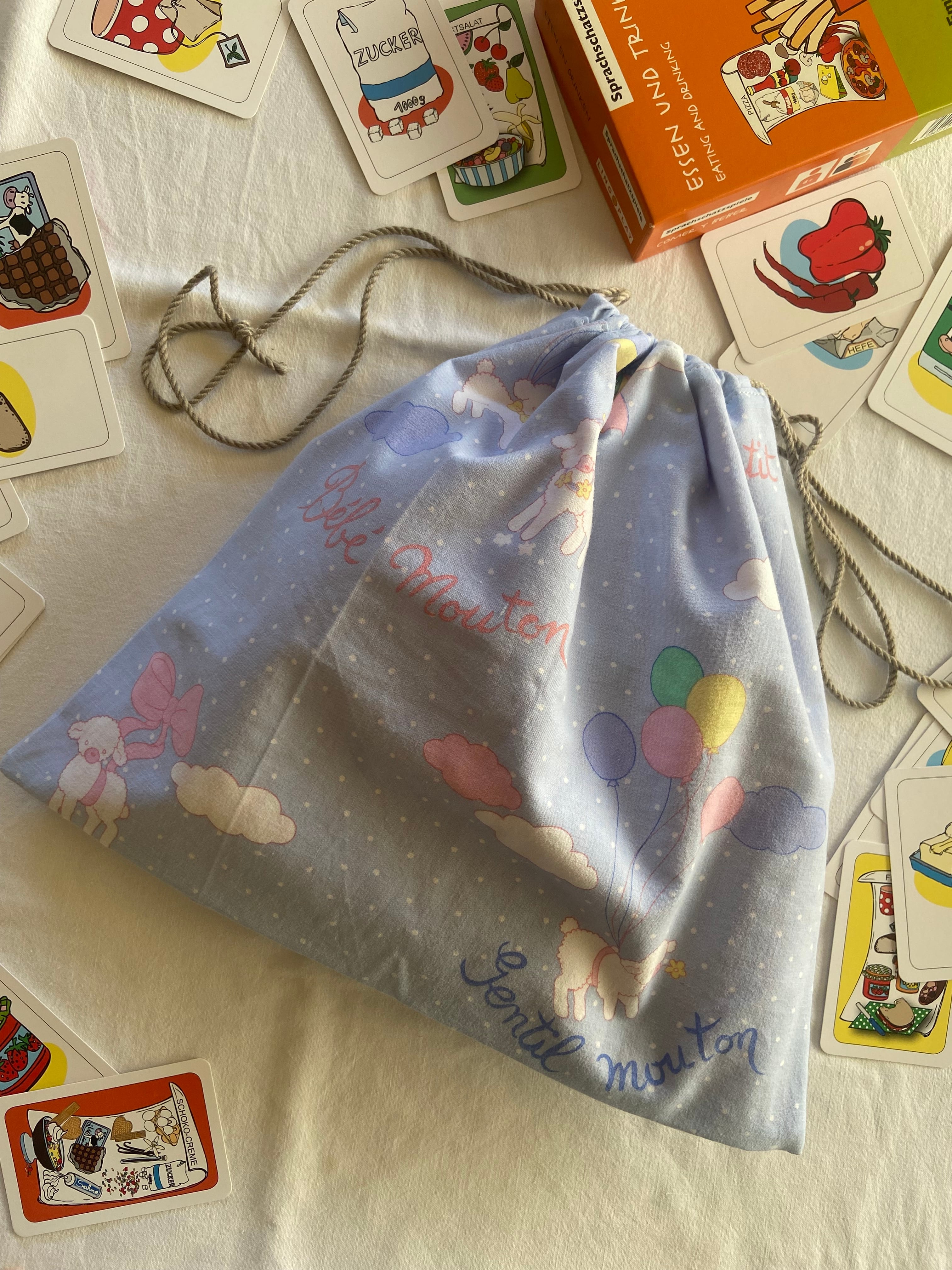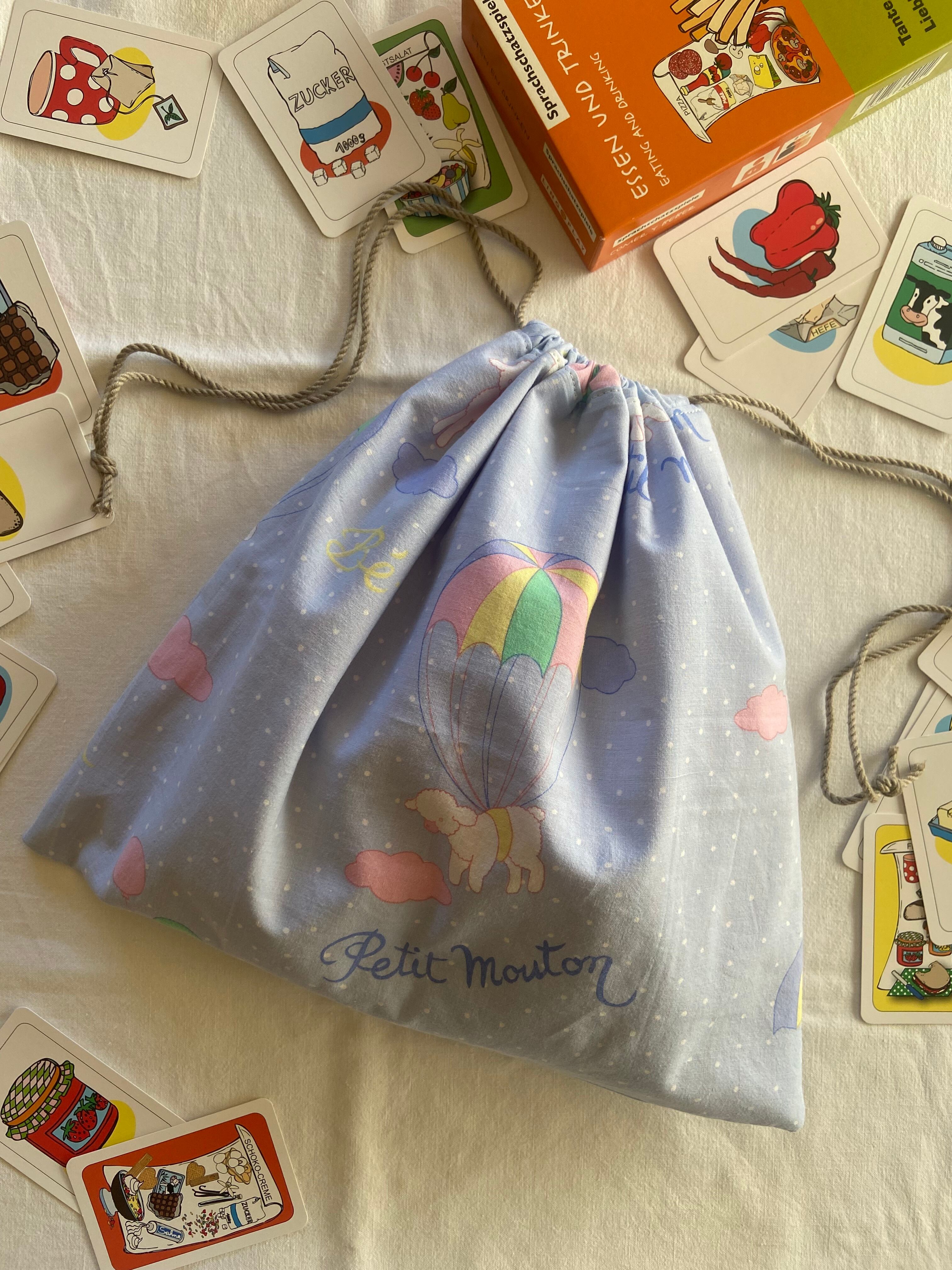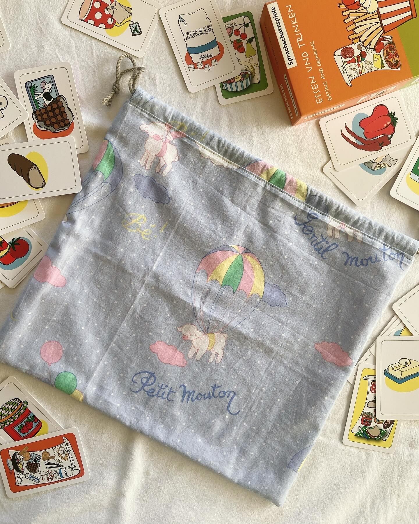 フランスのヴィンテージシーツで制作した、ちょっと大きめサイズの巾着袋になります。(Large size)