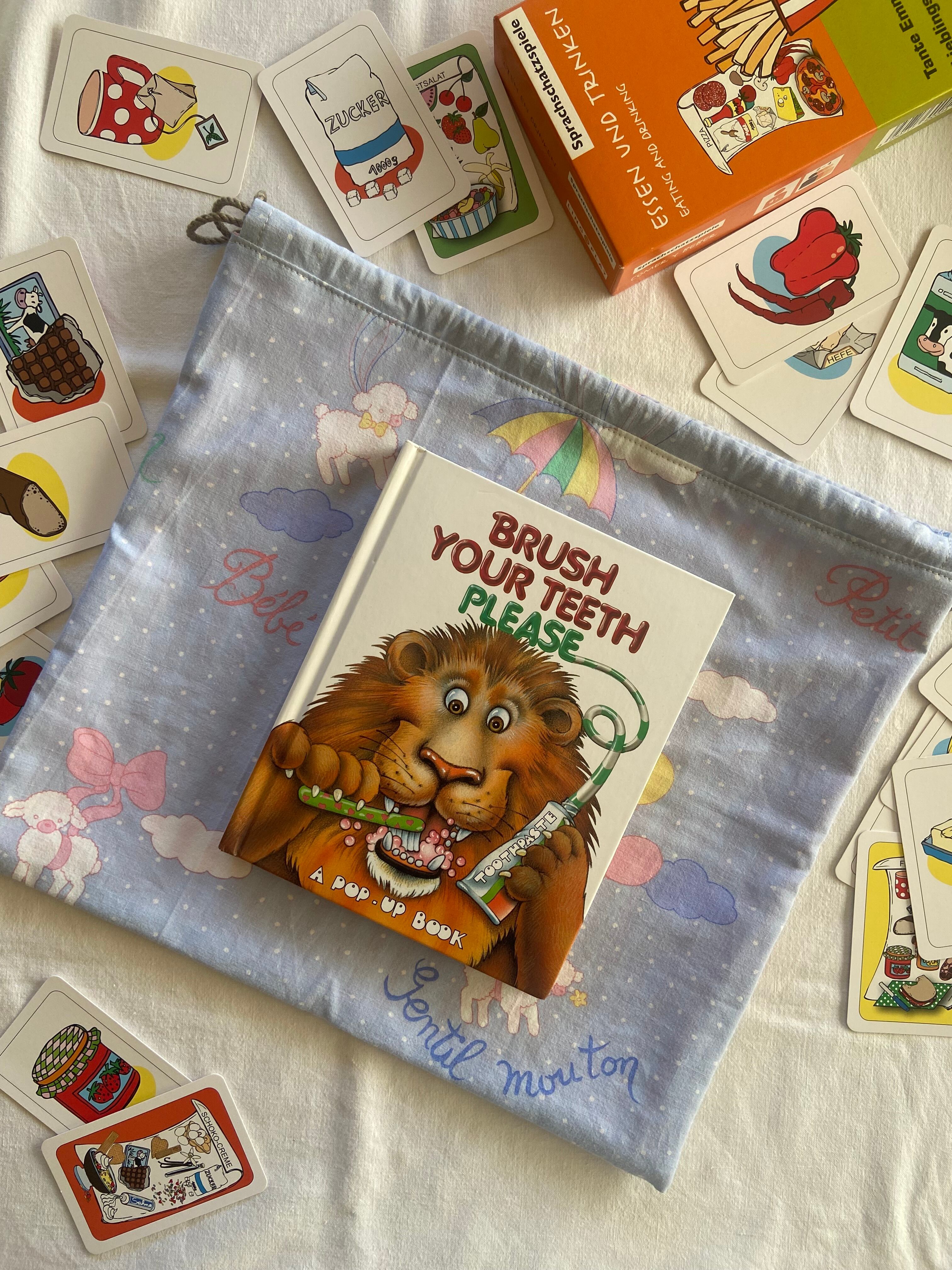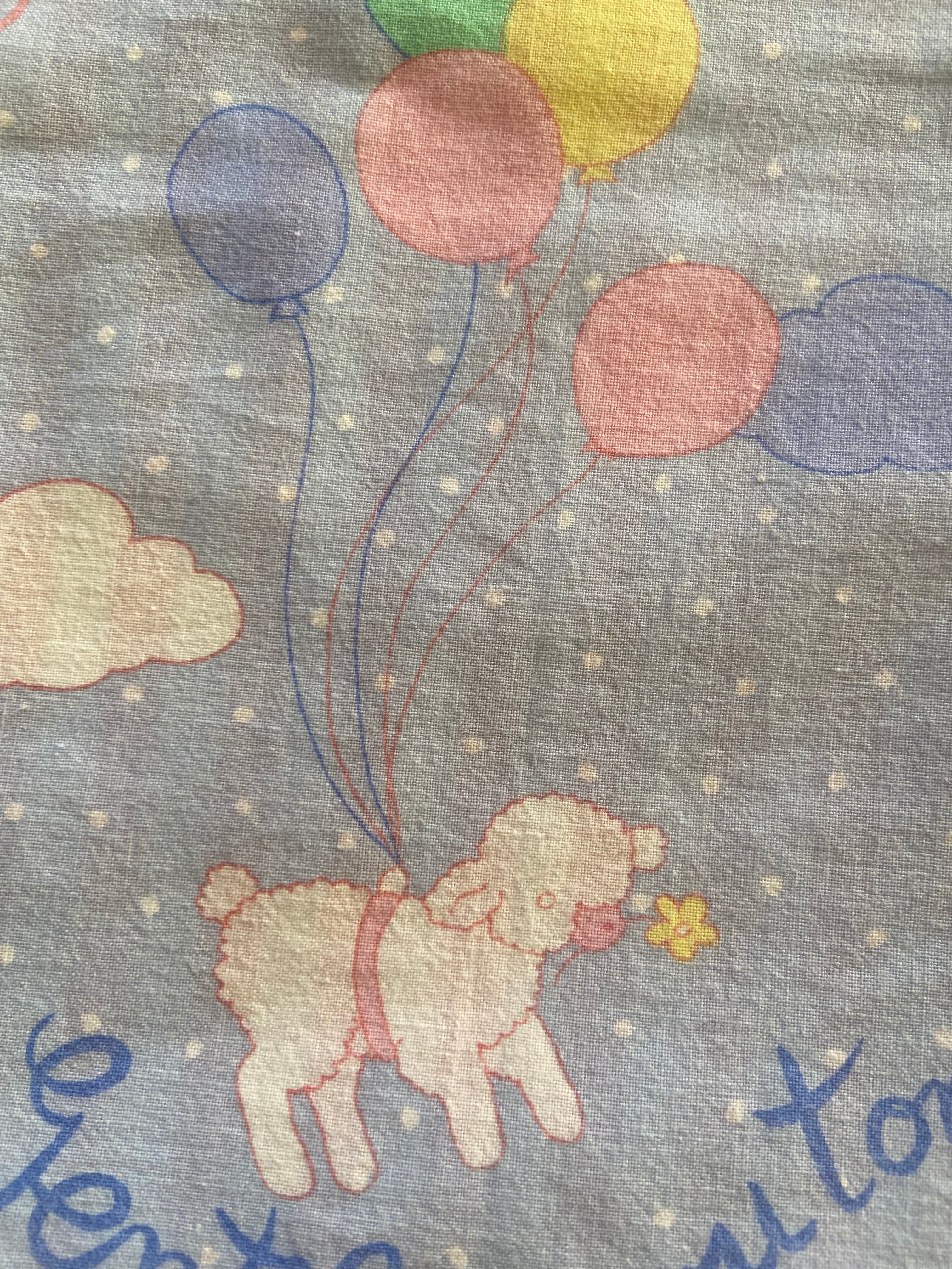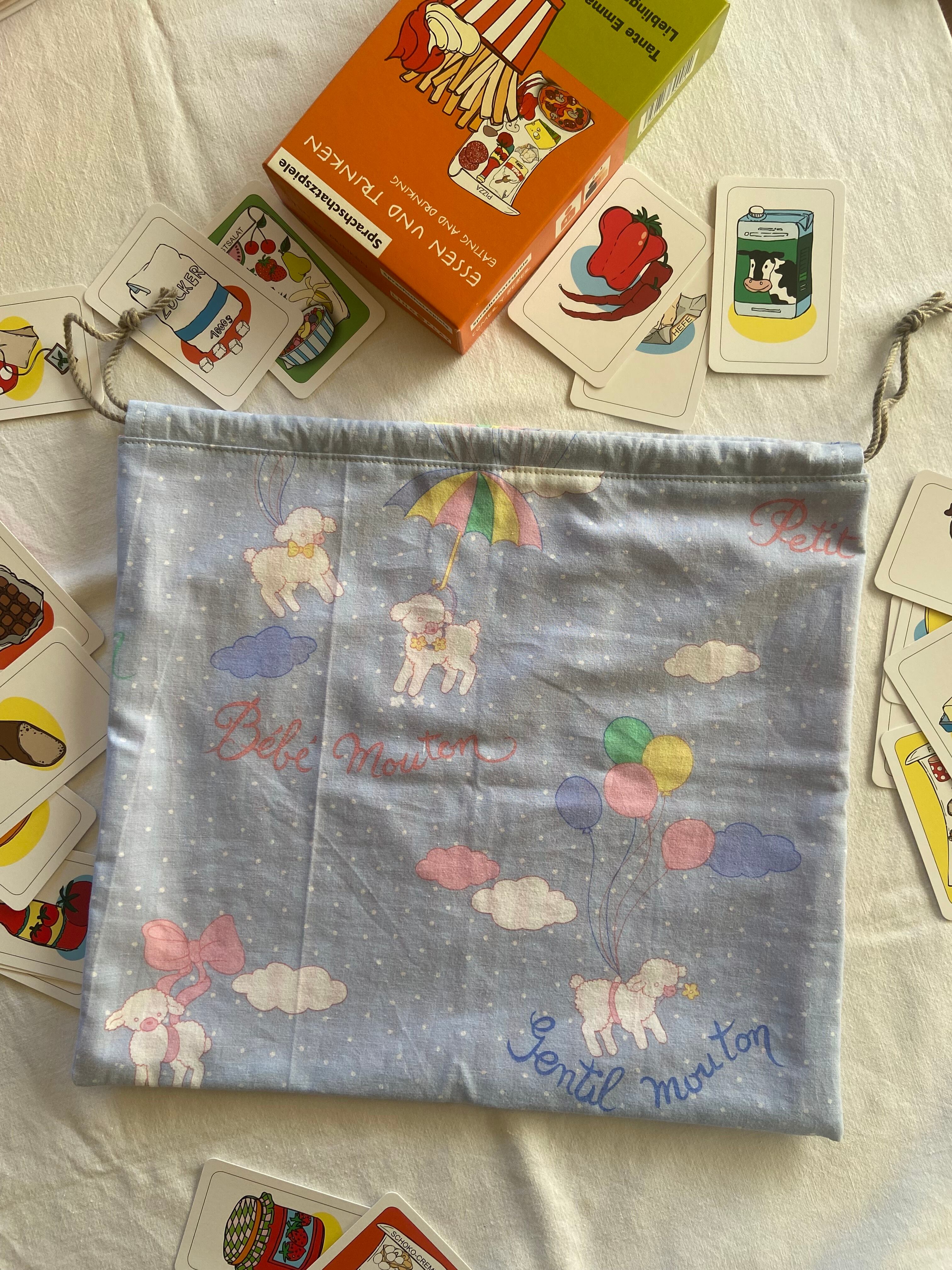 ビンテージシーツで制作しております。色褪せやダメージ等見られることもありますが、それも味わいと思っていただけむしたら幸いです。