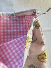 内布は高密度で織られたコットン生地を合わせました。袋を開けた時、チラリと見えるピンクのチェックがポイントです!