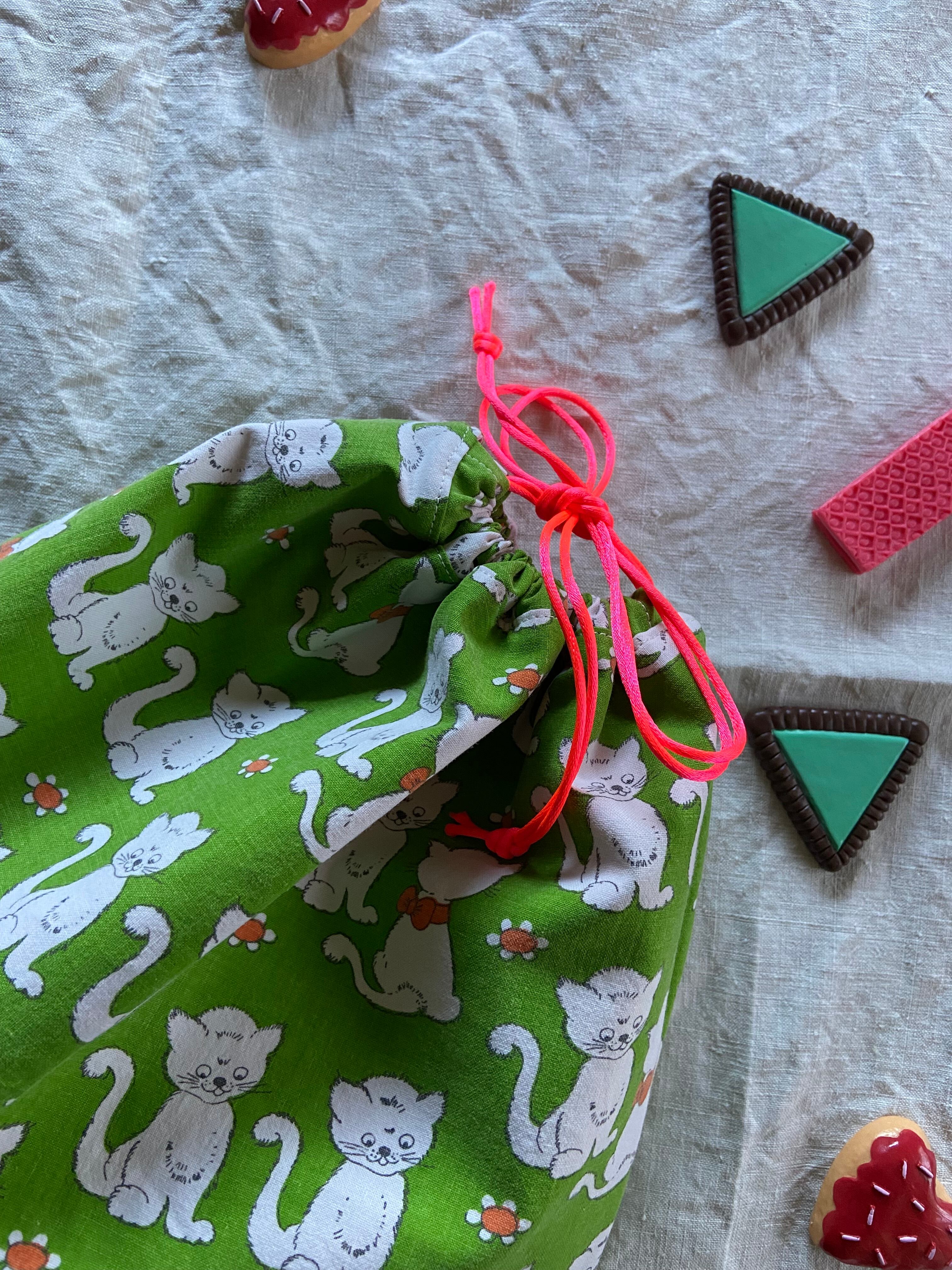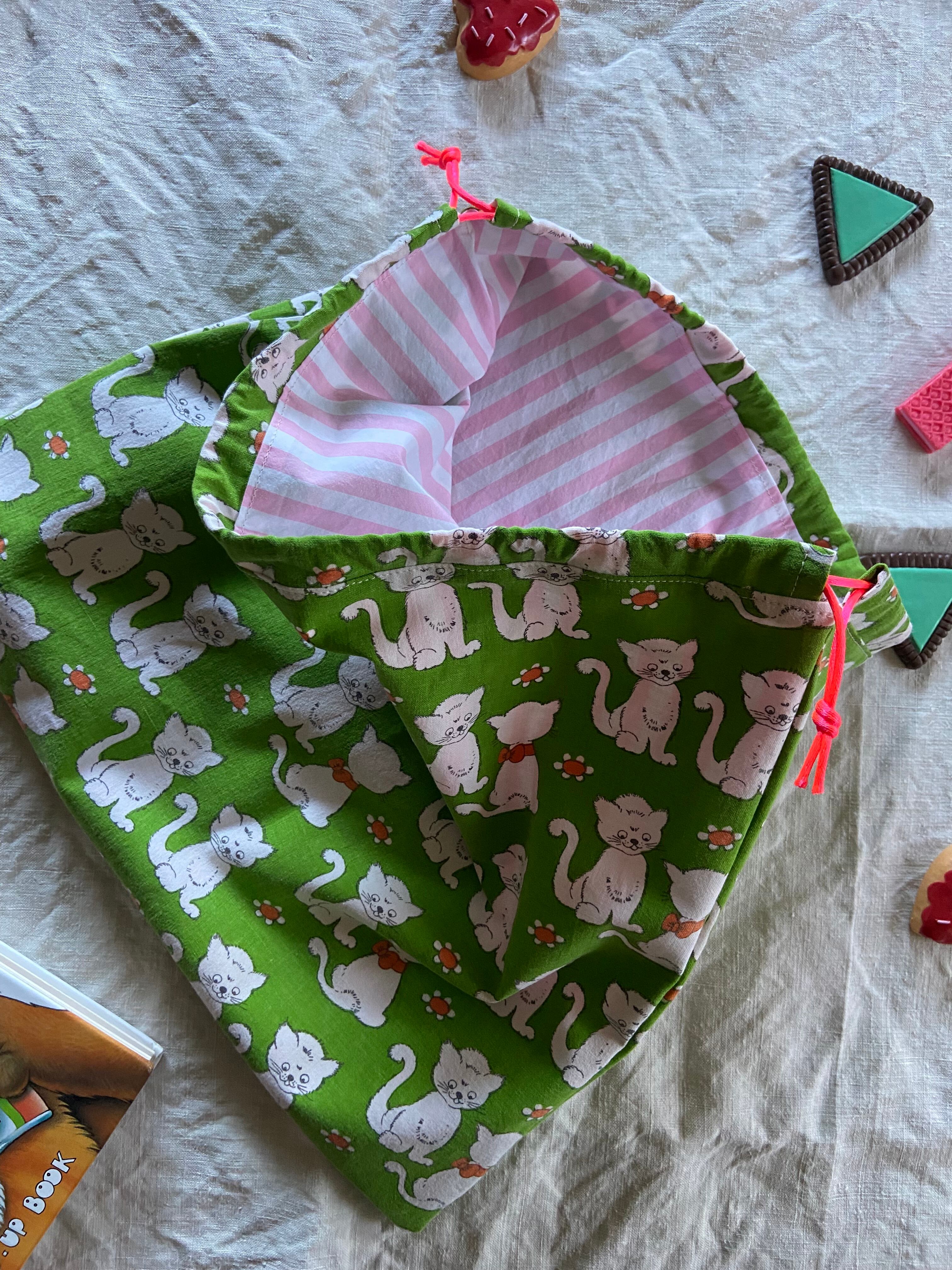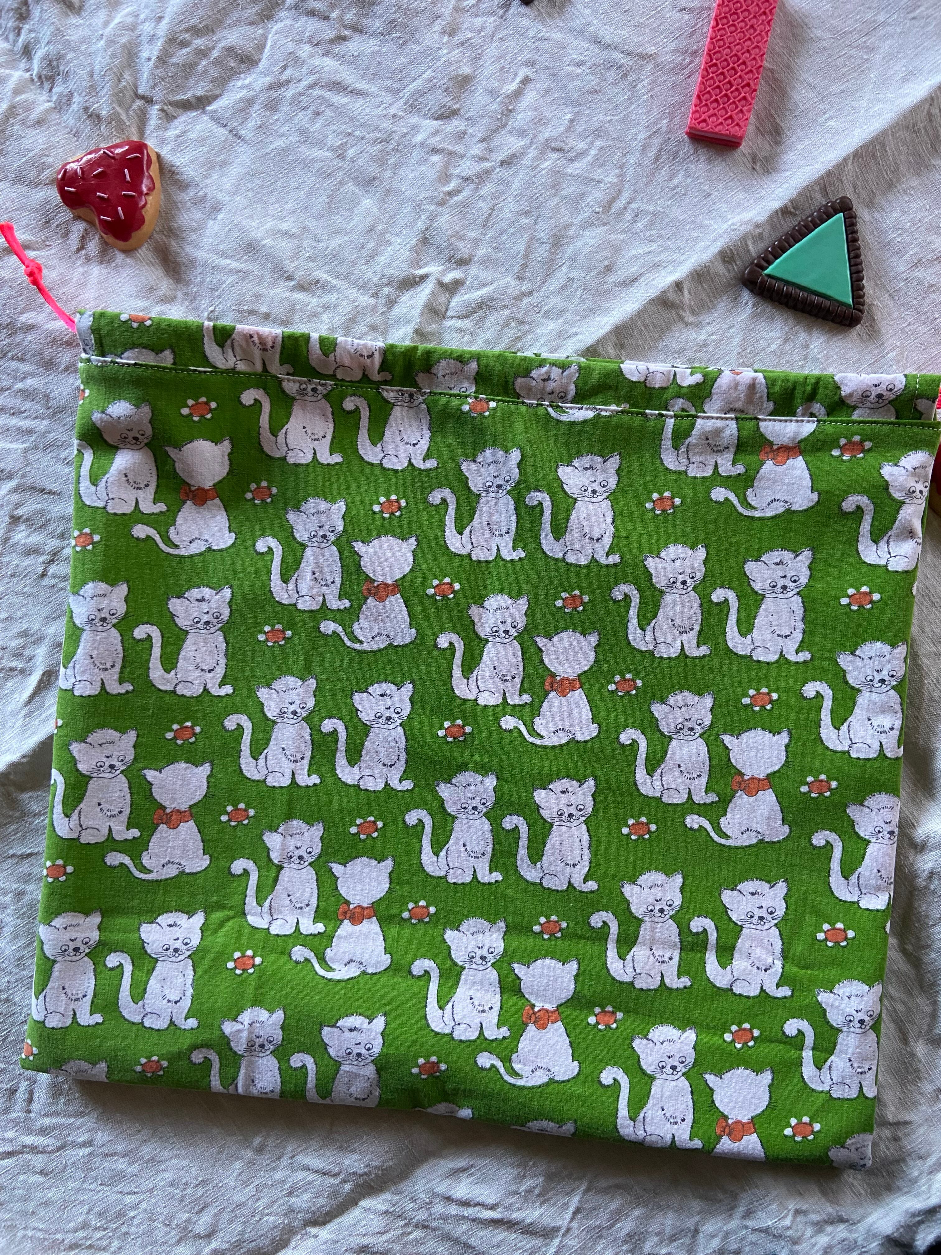 ドイツヴィンテージシーツで制作した、ちょっと大きめサイズの巾着袋になります。(Large size)